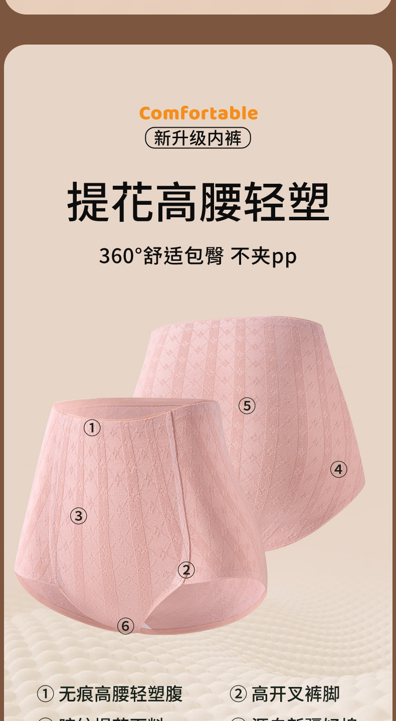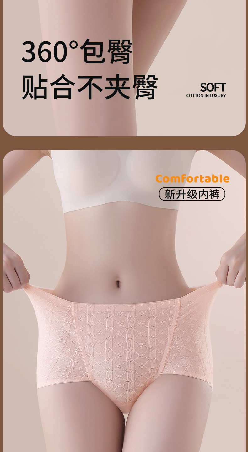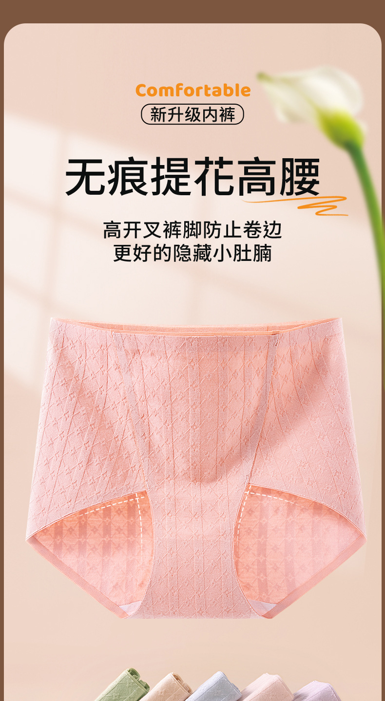 Calzoncillos de vientre de cintura alta jacquard de algodón puro para mujer mejorados 7A entrepierna de algodón antibacteriano calzoncillos sin costuras de gran tamaño 2024 nuevo