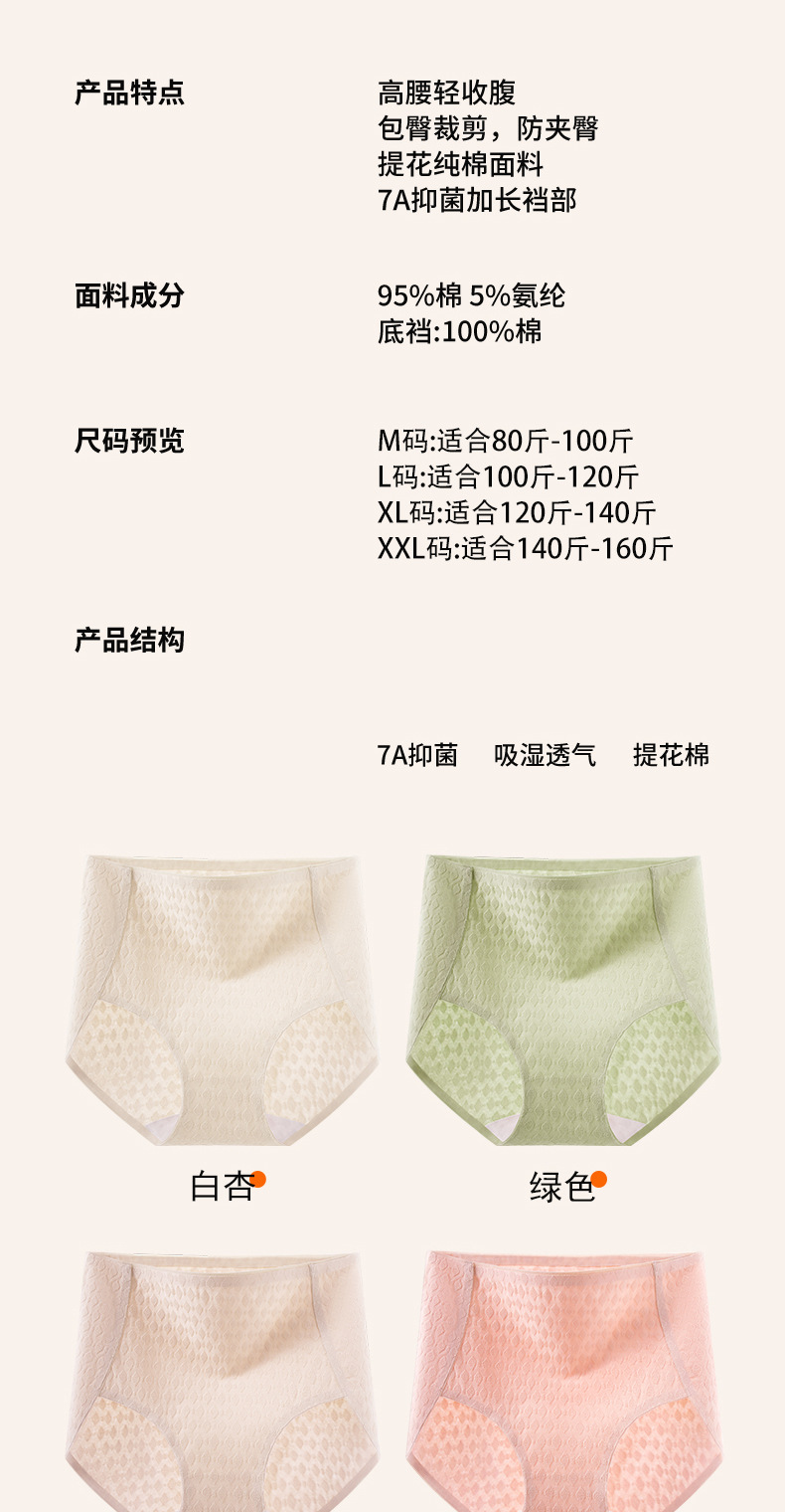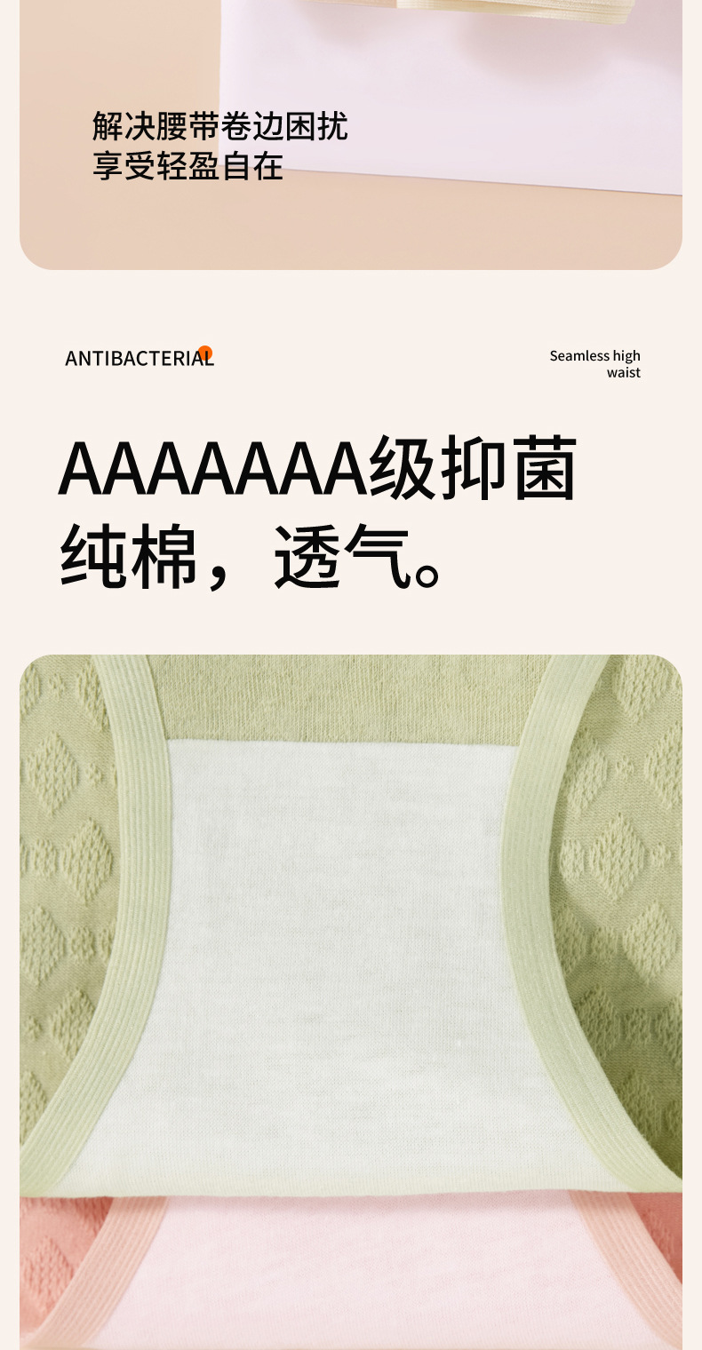 Algodón sin costuras 7A antibacteriano algodón entrepierna 2024 nuevo estilo cintura alta vientre suave ceroso agradable para la piel transpirable calzoncillos para mujer