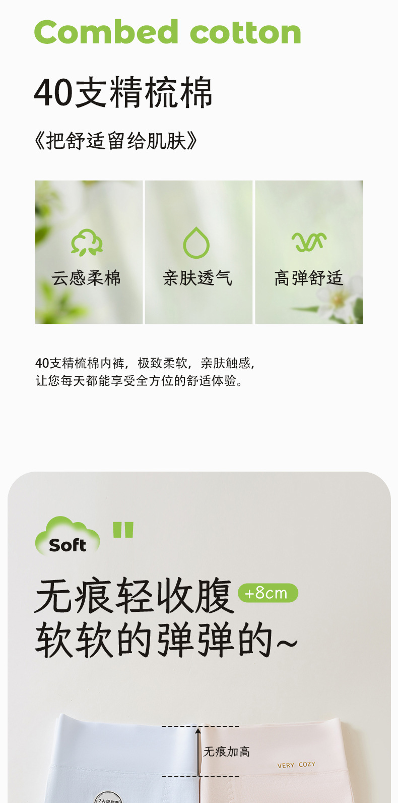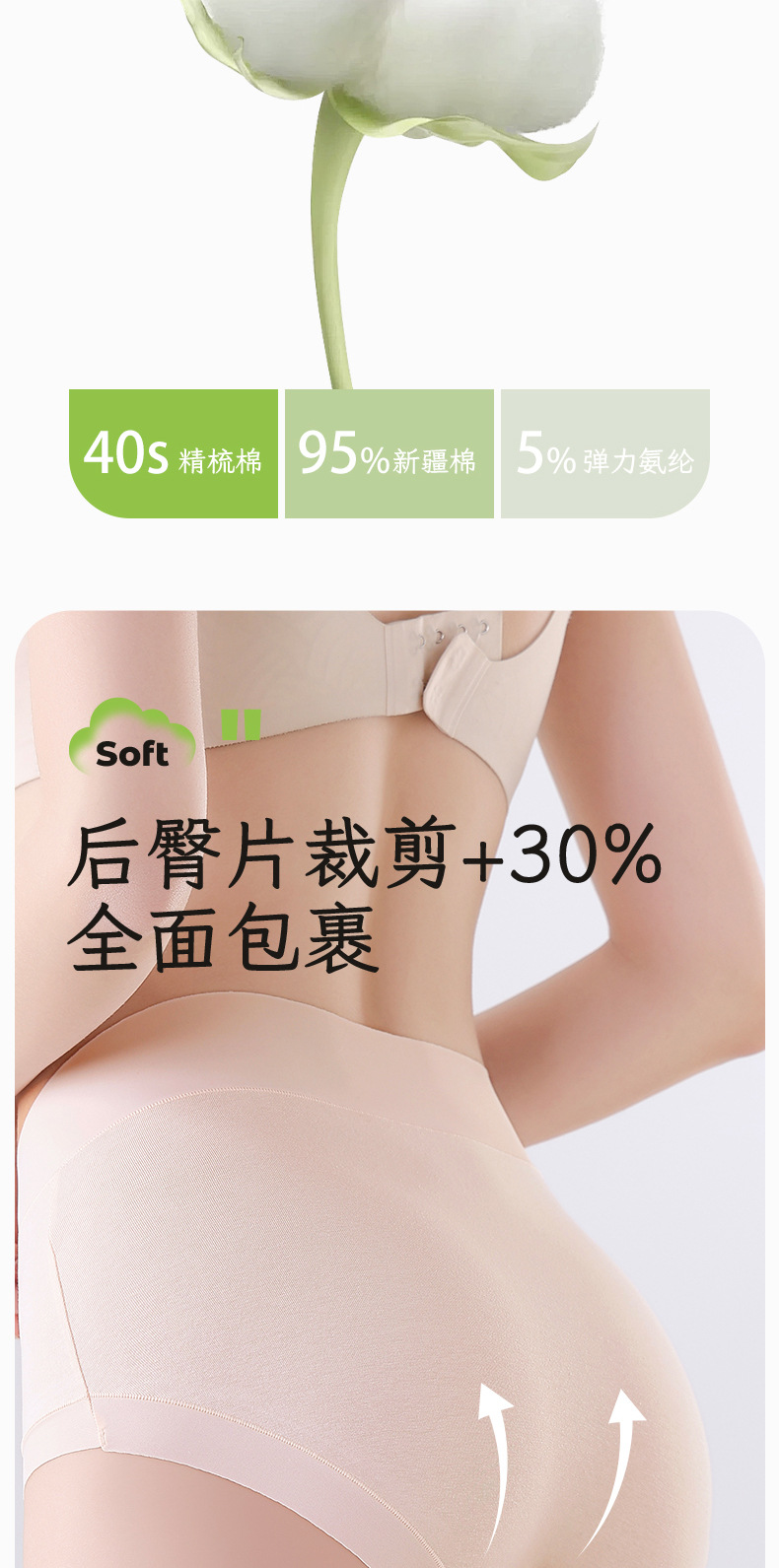40 algodón de flujo fino 2024 nuevo algodón para bebés agradable para la piel y transpirable 7A entrepierna antibacteriana de algodón puro alto elástico abdomen ropa interior de mujer