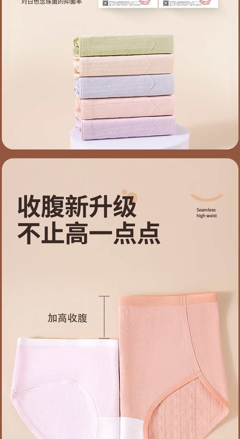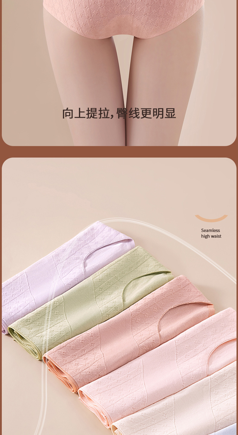 Algodón jacquard cintura alta 2024 nuevo estilo cintura alta abdomen 7A entrepierna de algodón antibacteriano agradable para la piel sin costuras ropa interior de mujer