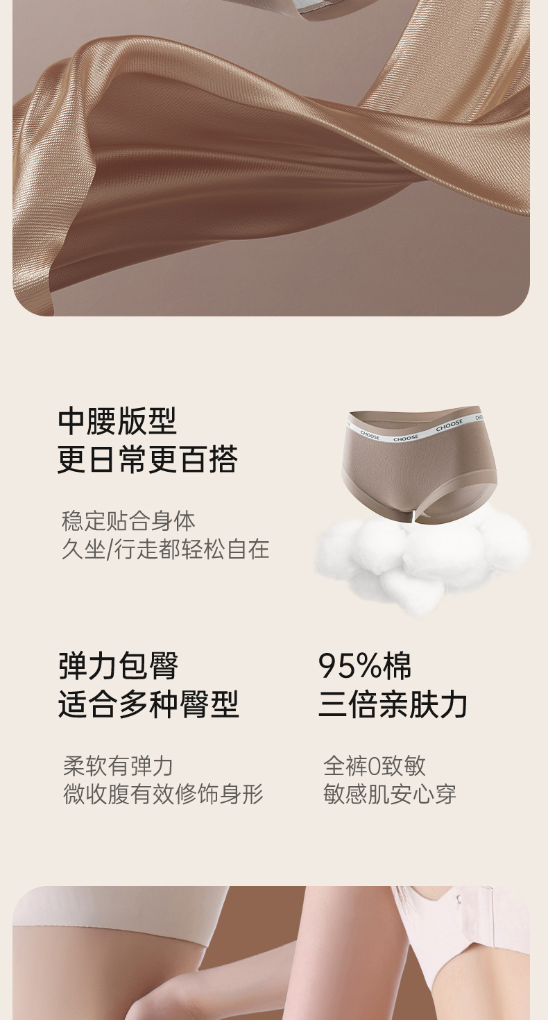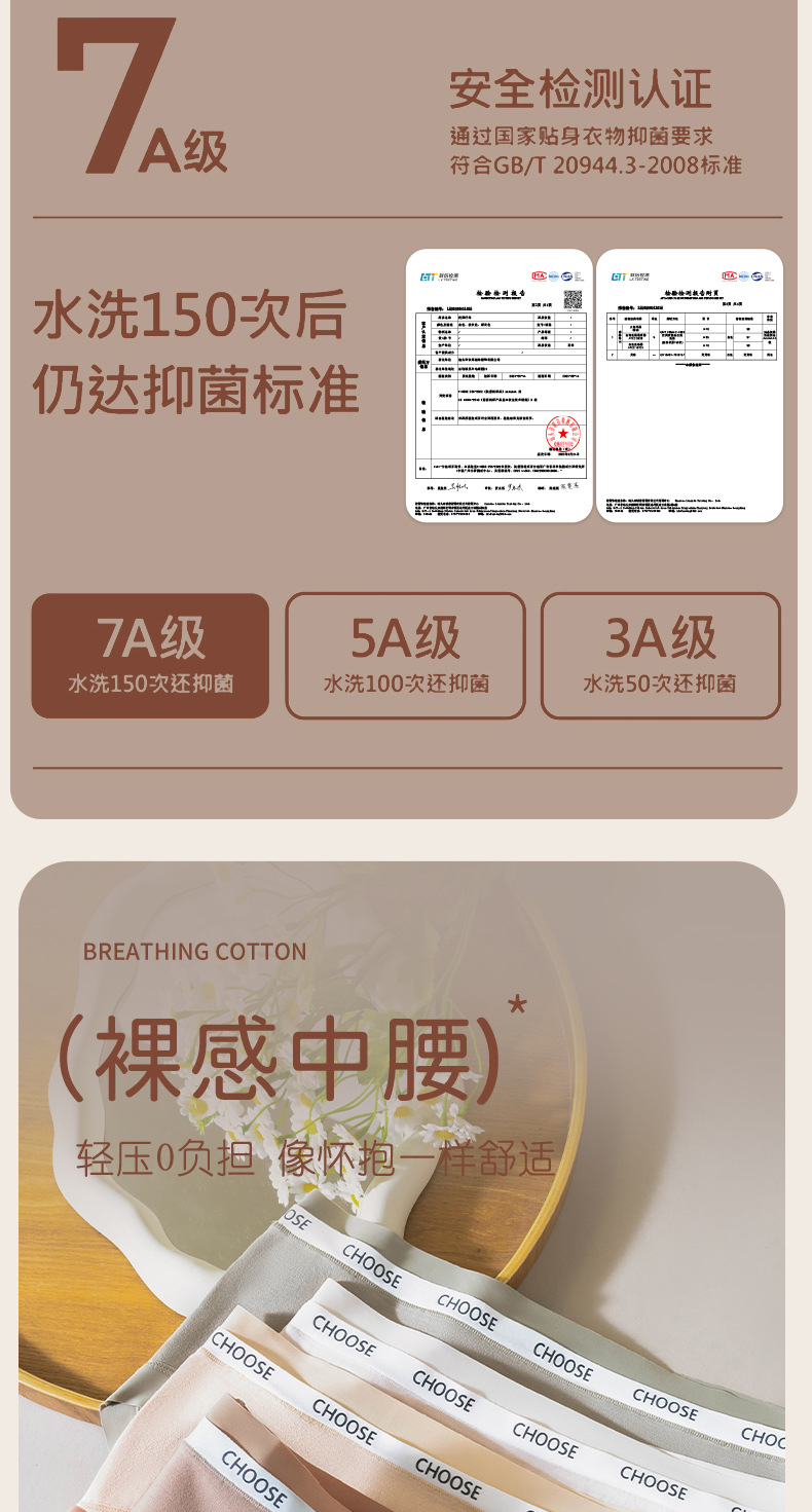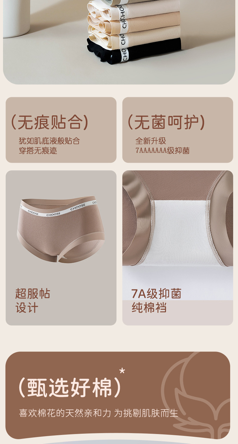 Algodón puro 2024 nuevos calzoncillos antibacterianos de cintura media de algodón puro 7A antibacteriano mujer transpirable algodón de clase A refrescante.