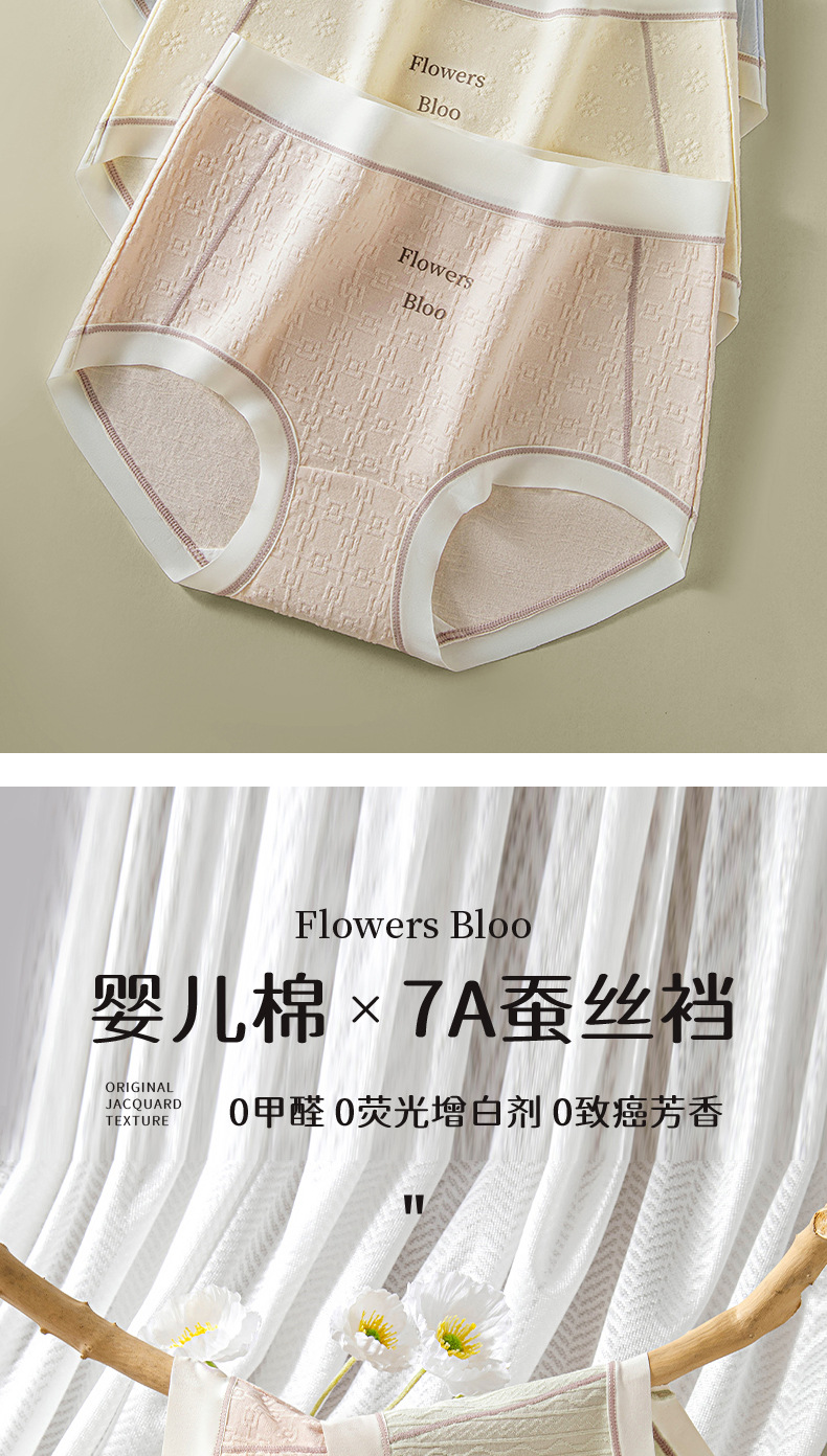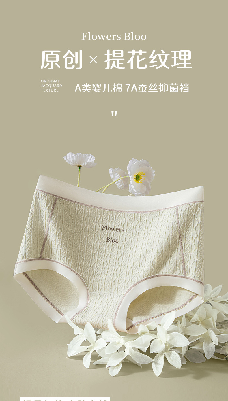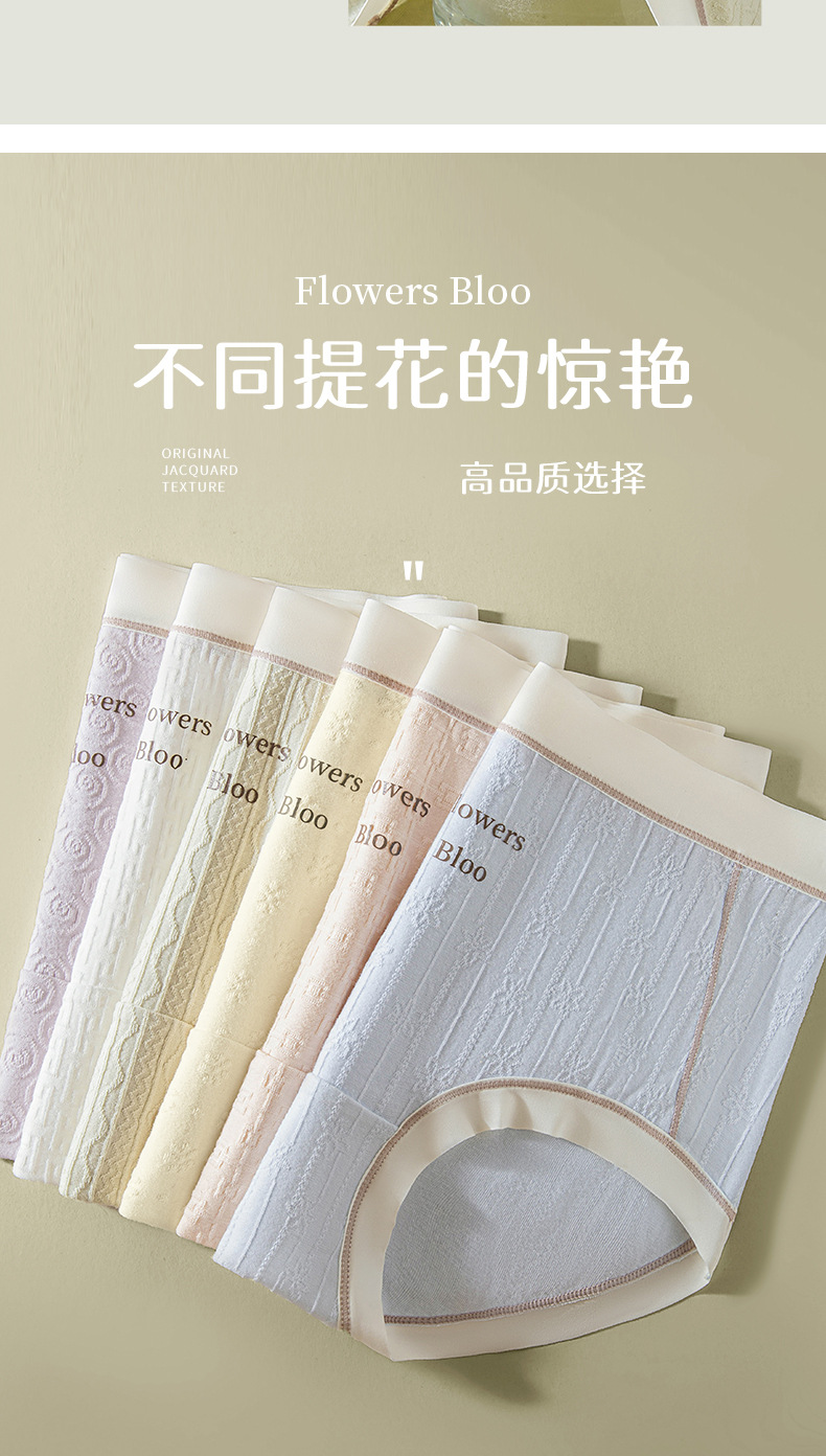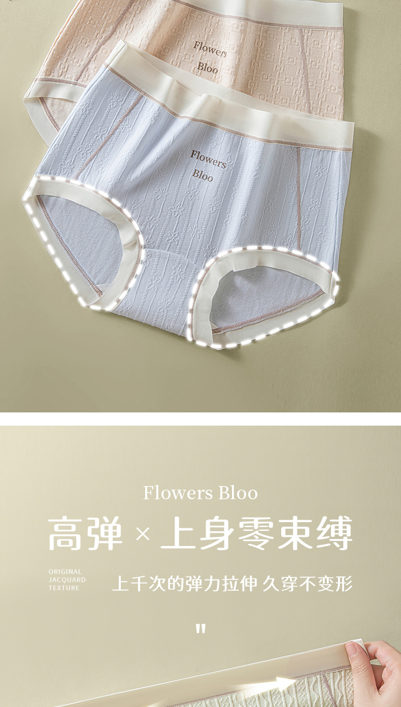 Verano nuevo estilo Clase A ropa interior de mujer de algodón para bebés 7A seda antibacteriana entrepierna inferior jacquard cintura media delgada transpirable sin costuras
