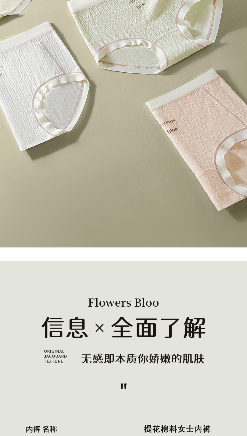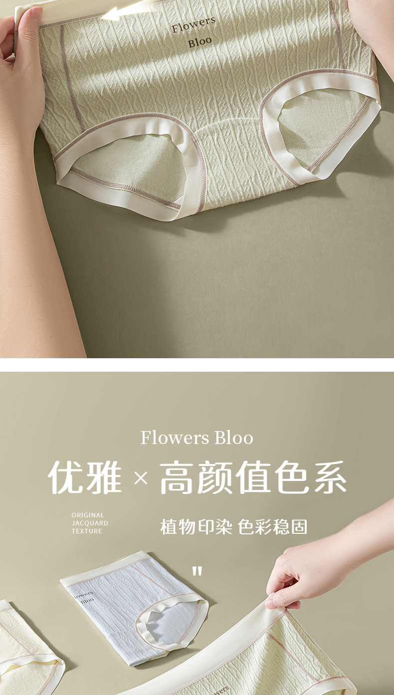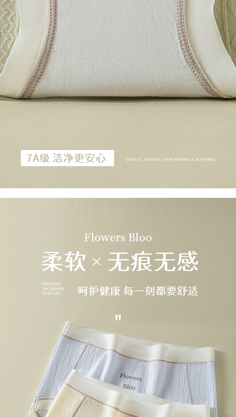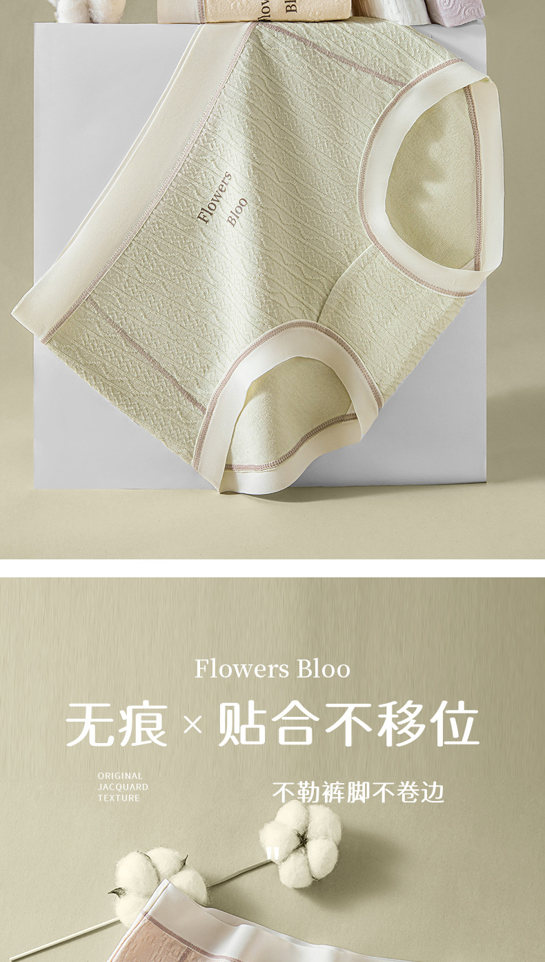 Verano nuevo estilo Clase A ropa interior de mujer de algodón para bebés 7A seda antibacteriana entrepierna inferior jacquard cintura media delgada transpirable sin costuras