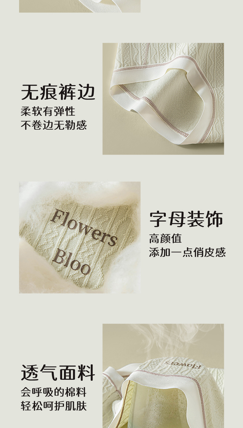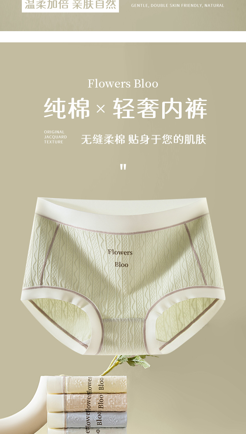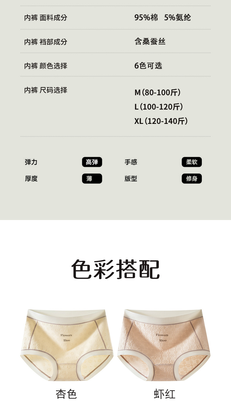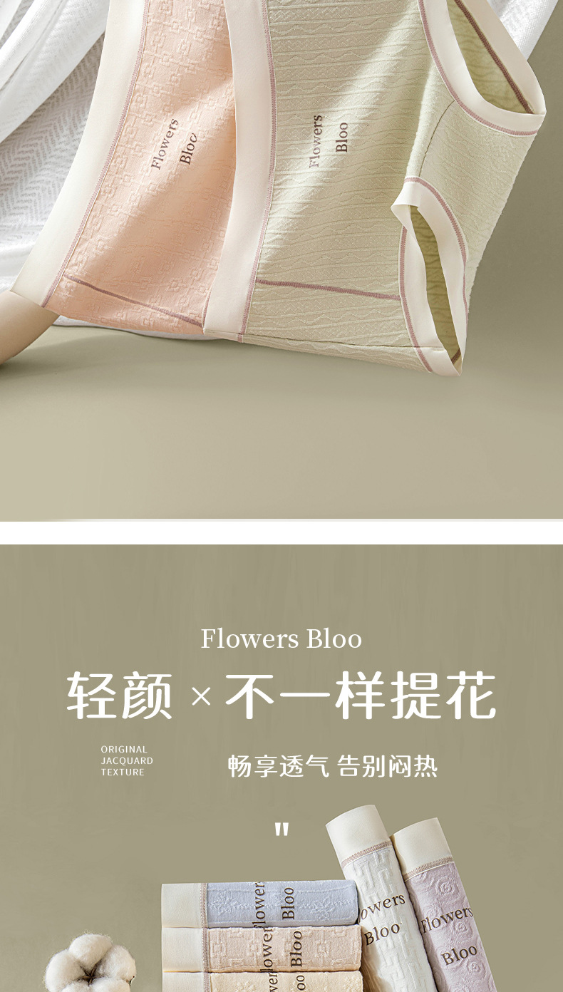 Verano nuevo estilo Clase A ropa interior de mujer de algodón para bebés 7A seda antibacteriana entrepierna inferior jacquard cintura media delgada transpirable sin costuras