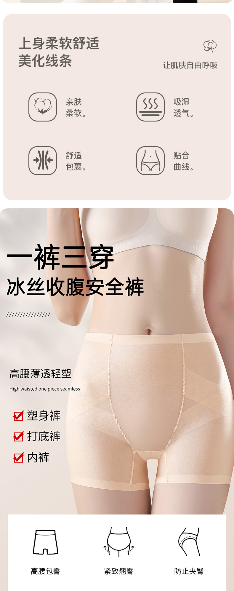Pantalones de abdomen especiales de cheongsam, abdomen fuerte, barriga pequeña, cintura alta, glúteos, pantalones de seguridad para dar forma al cuerpo, nuevo estilo, refrescante