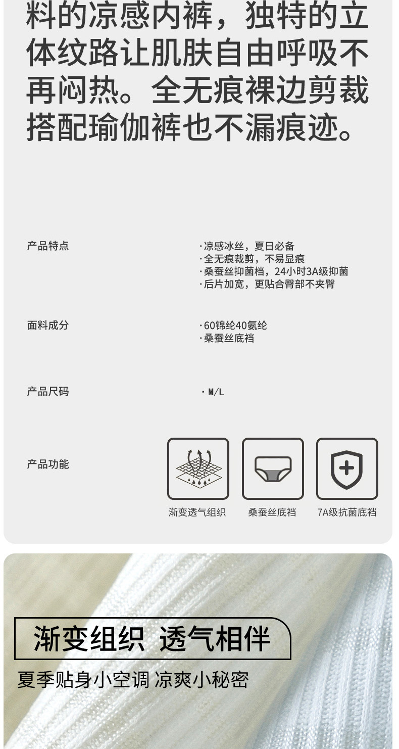 Las nalgas de melocotón de color degradado ultrafino de secado rápido, invisibles y sin costuras, las bragas de entrepierna antibacterianas de seda son refrescantes