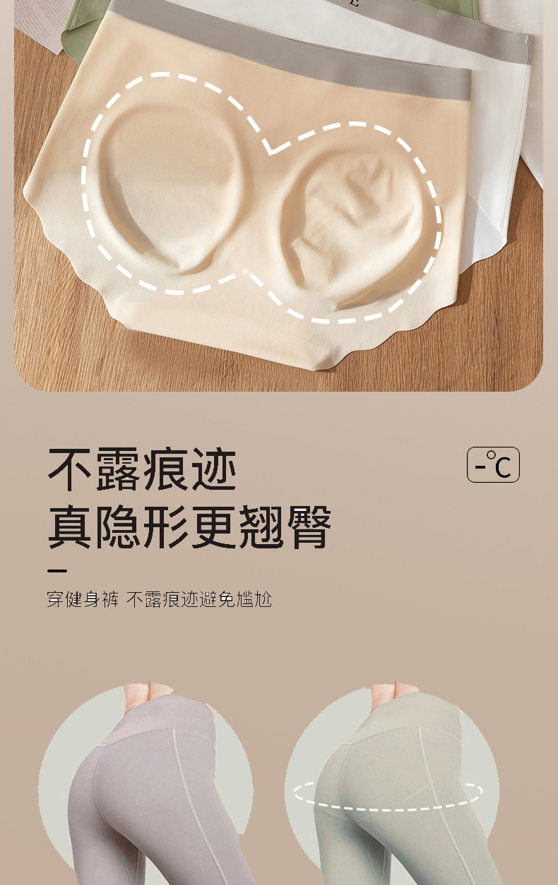 Seda de hielo sin costuras, nalgas de melocotón, seda de hielo sin costuras, moda deportiva, algodón puro, entrepierna antibacteriana, bragas de seda de hielo sin costuras, refrescante