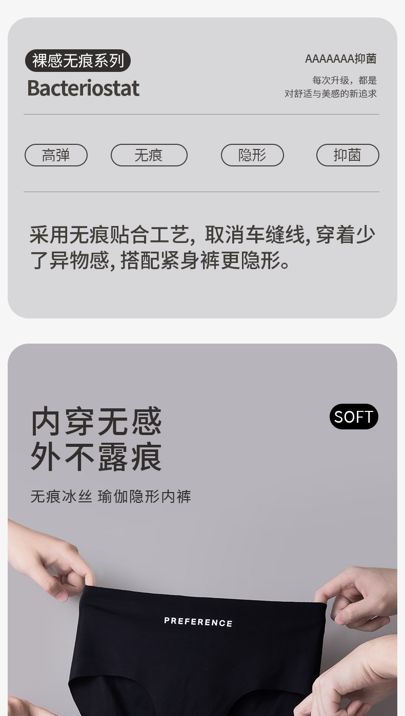 Ropa interior deportiva simple de entrepierna antibacteriana de algodón de seda de hielo sin costuras para niñas