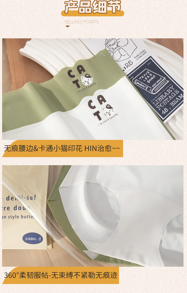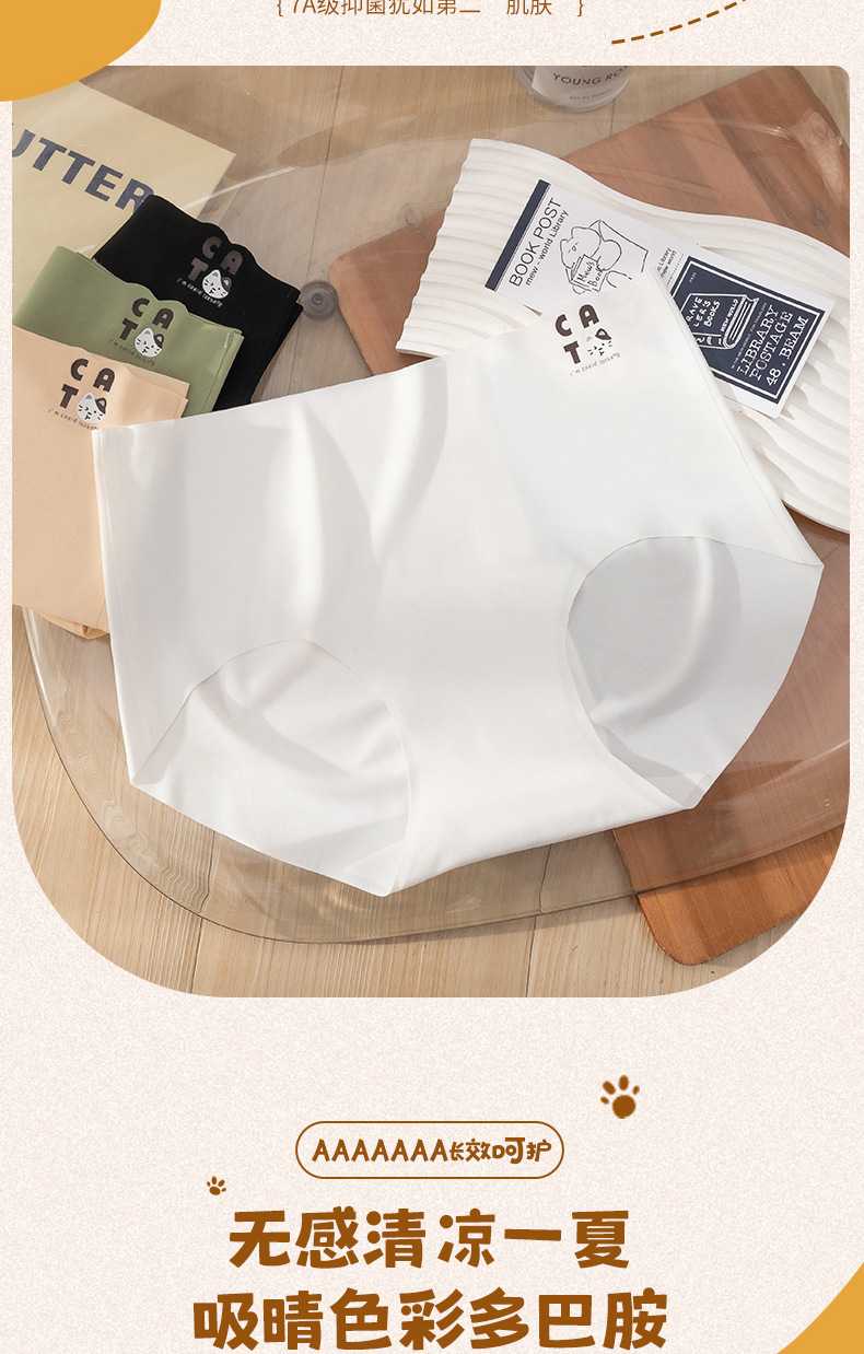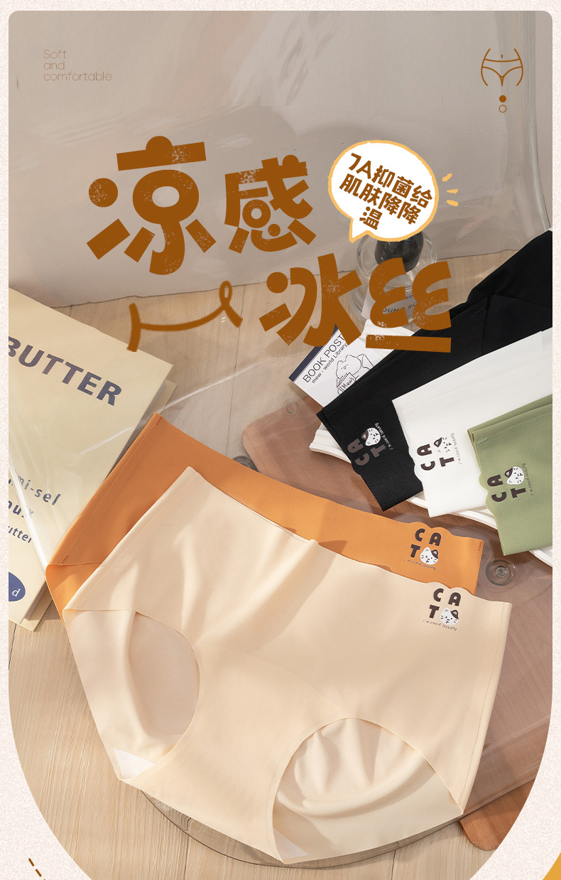 Ladies sin costuras seda de hielo sexy cintura media transpirable niña japonesa que da a luz algodón antibacteriano entrepierna sin costuras triángulo calzoncillos para mujer
