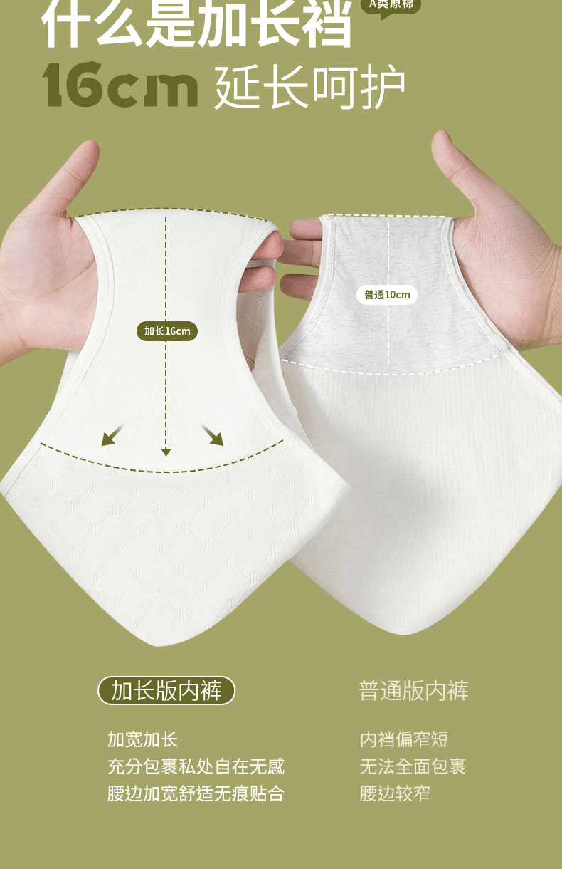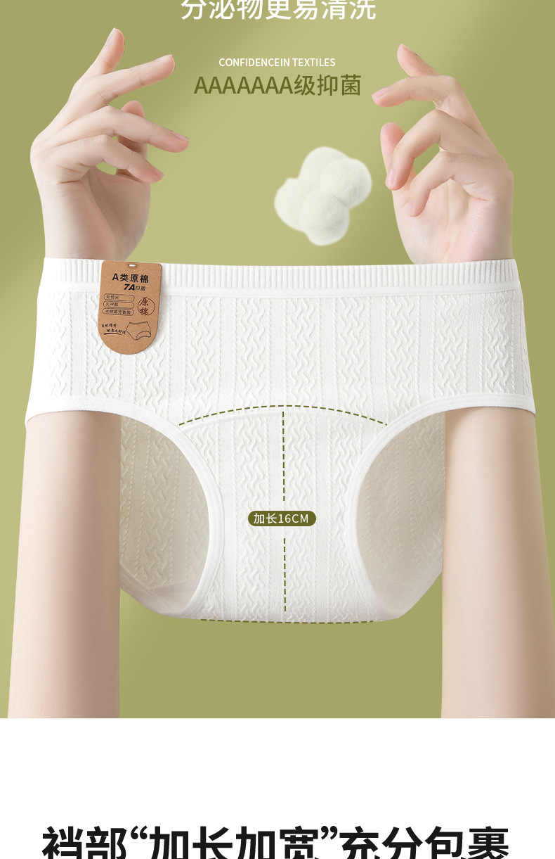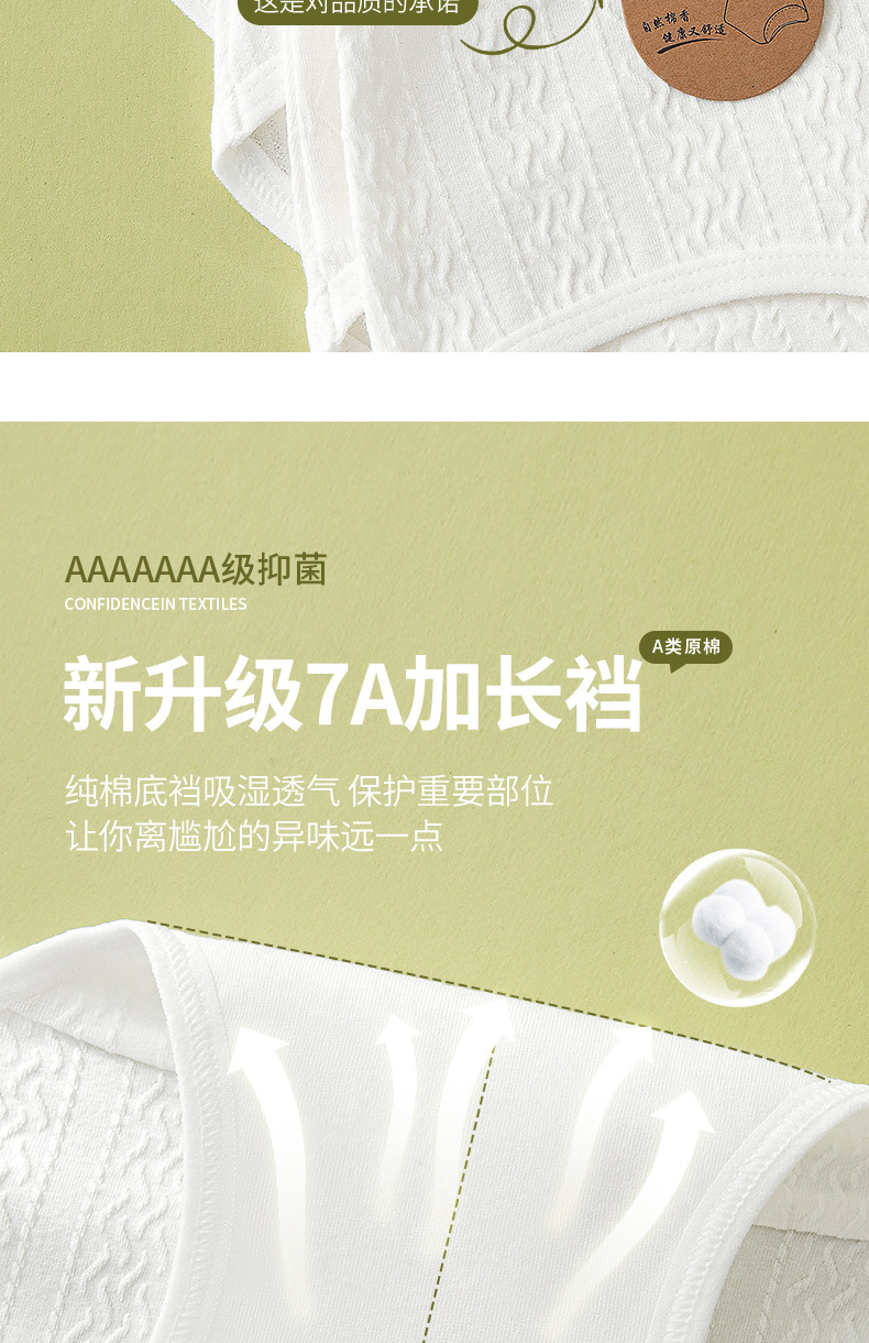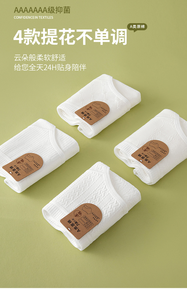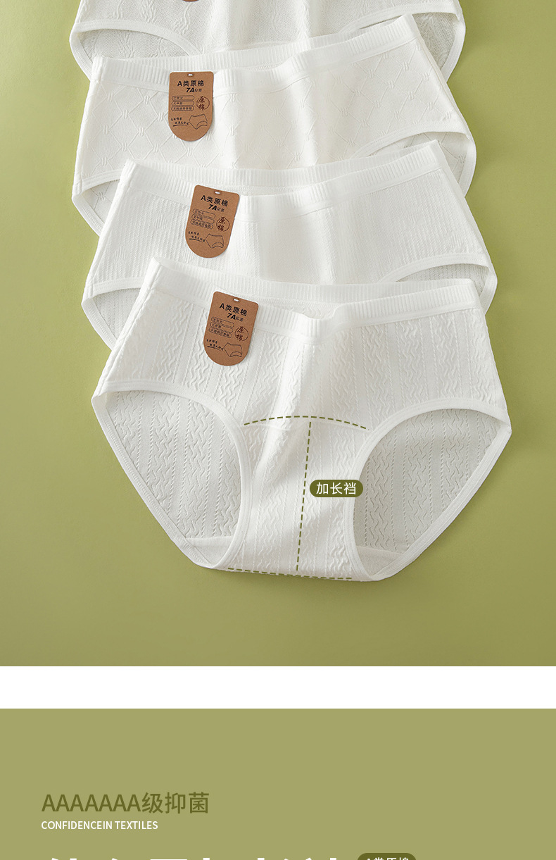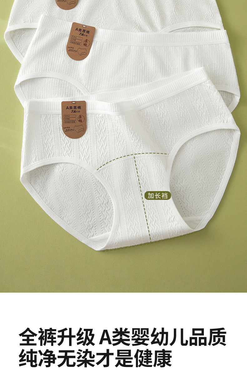 Algodón crudo algodón para bebés sin impresión y sin fluorescencia entrepierna alargada entrepierna antibacteriana 7A ~ Calzoncillos de algodón para mujer de algodón para bebé
