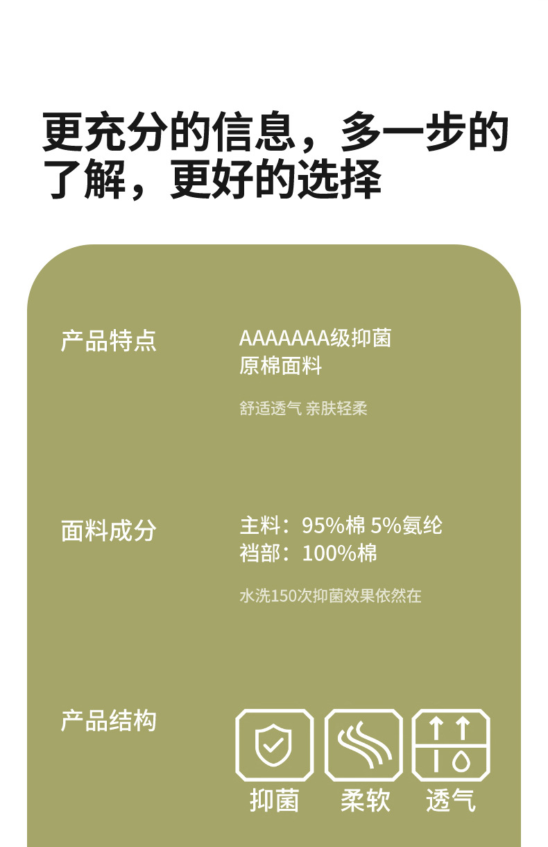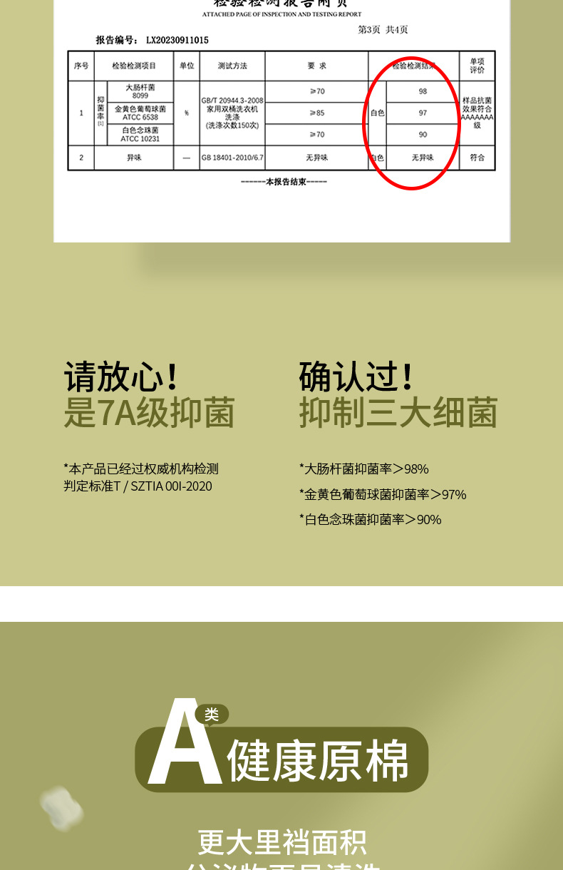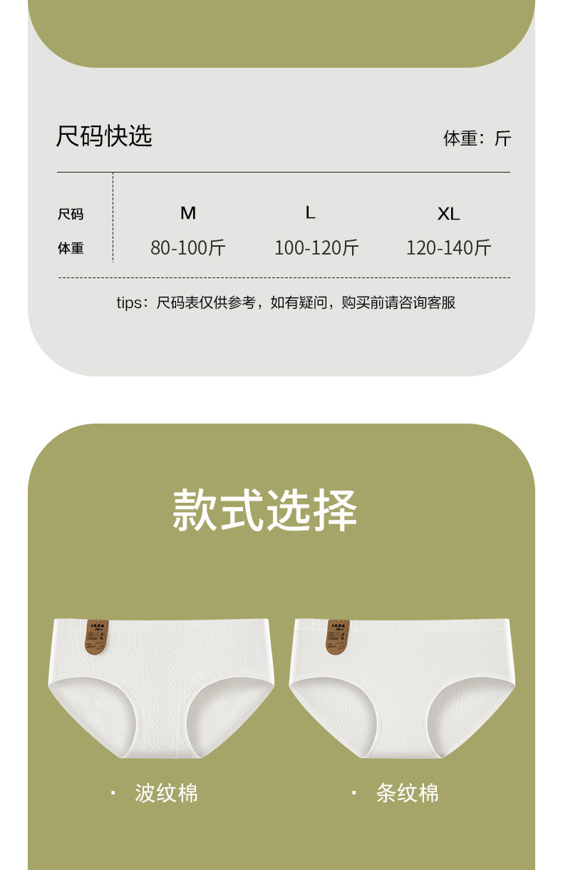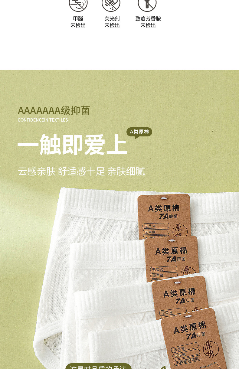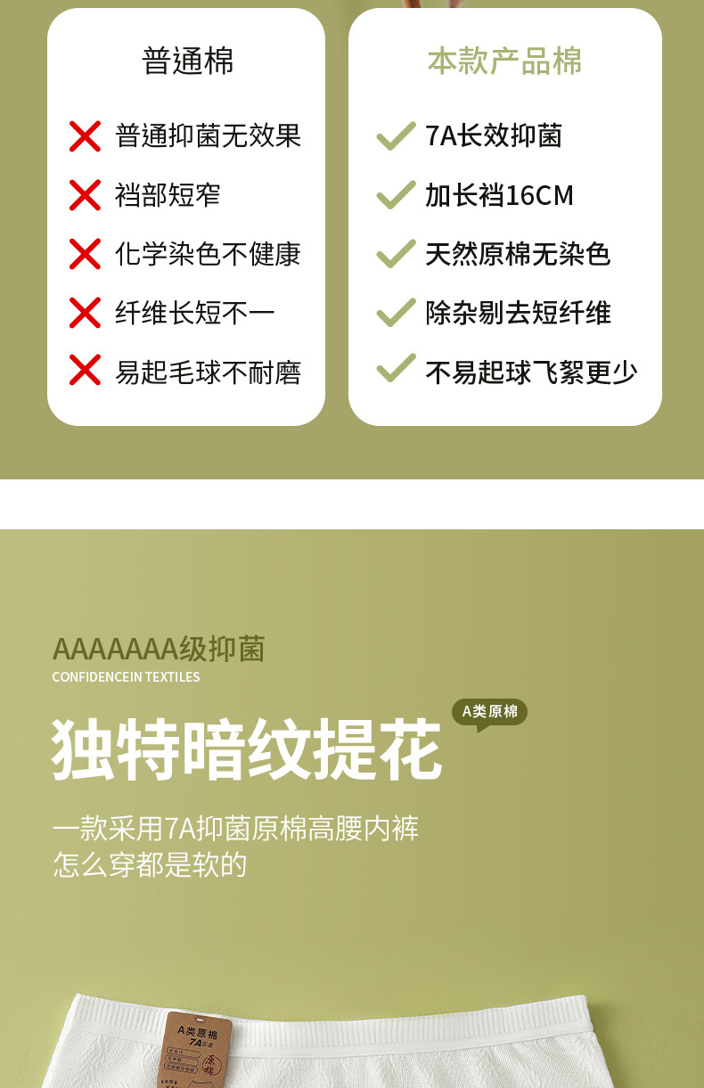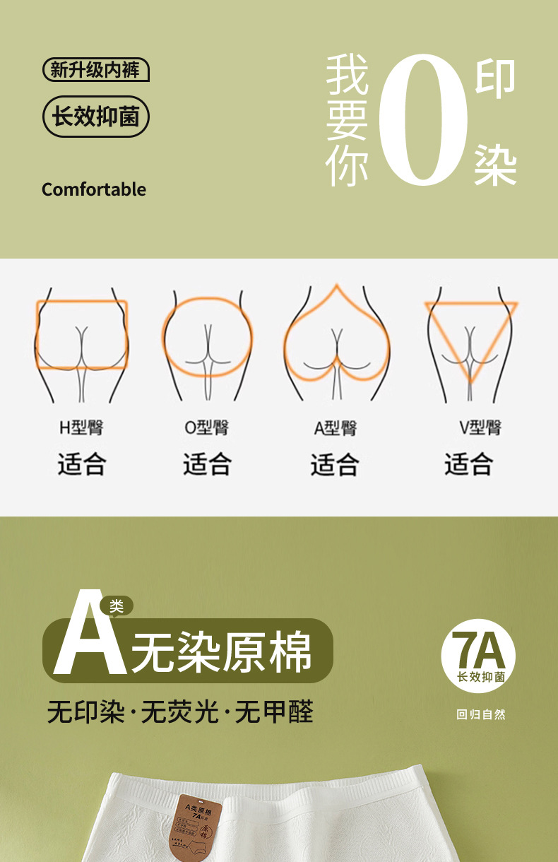 Algodón crudo algodón para bebés sin impresión y sin fluorescencia entrepierna alargada entrepierna antibacteriana 7A ~ Calzoncillos de algodón para mujer de algodón para bebé