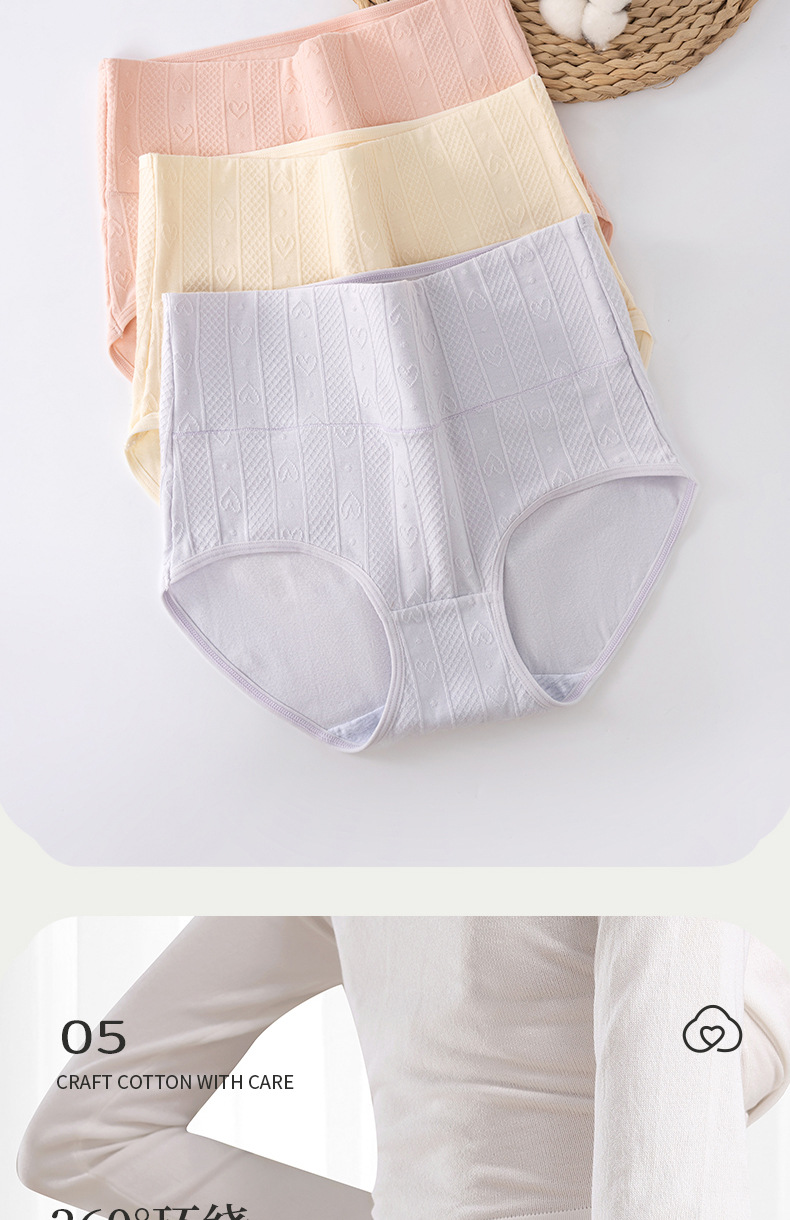 Ropa interior de Jacquard de algodón puro más tamaño cintura alta contracción del vientre levantamiento de la cadera alto elástico anti-rizado de algodón puro ropa interior de la entrepierna antibacteriana Otoño e Invierno Nuevo