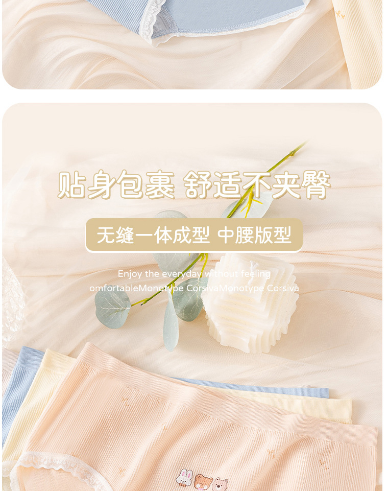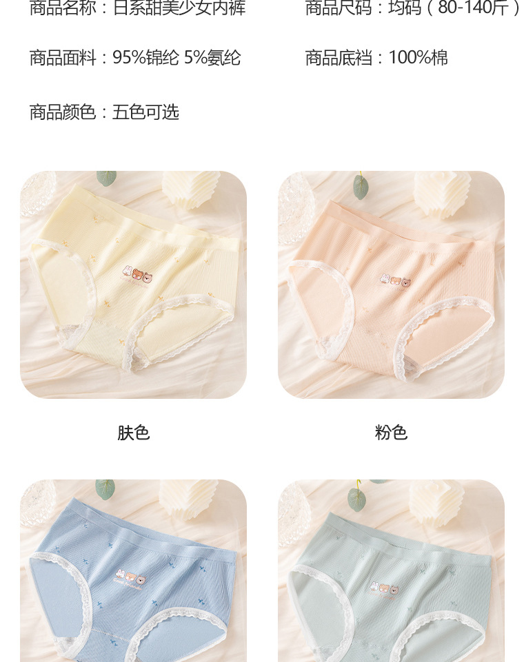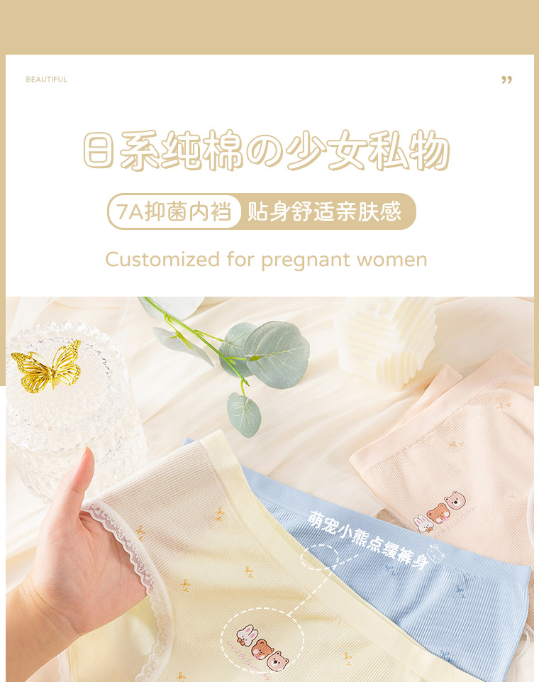 Otoño e invierno lindo oso algodón antibacteriano entrepierna transpirable niña cintura media cadera lindo japonés cómodo calzoncillos agradables para la piel