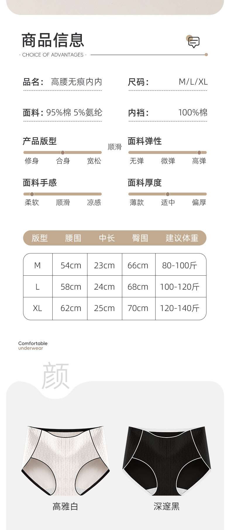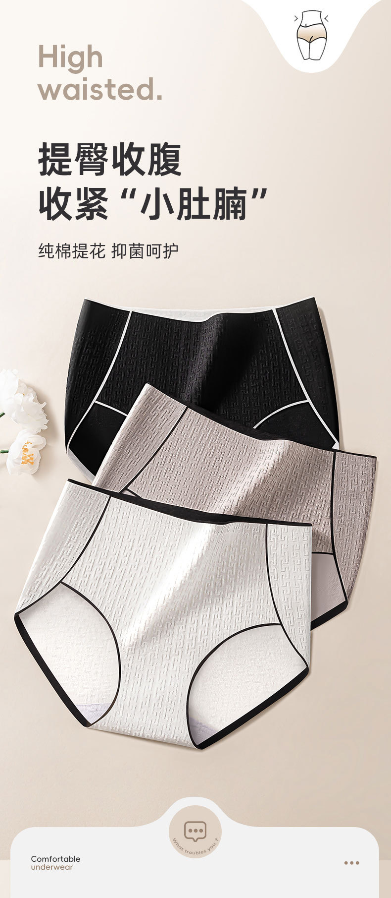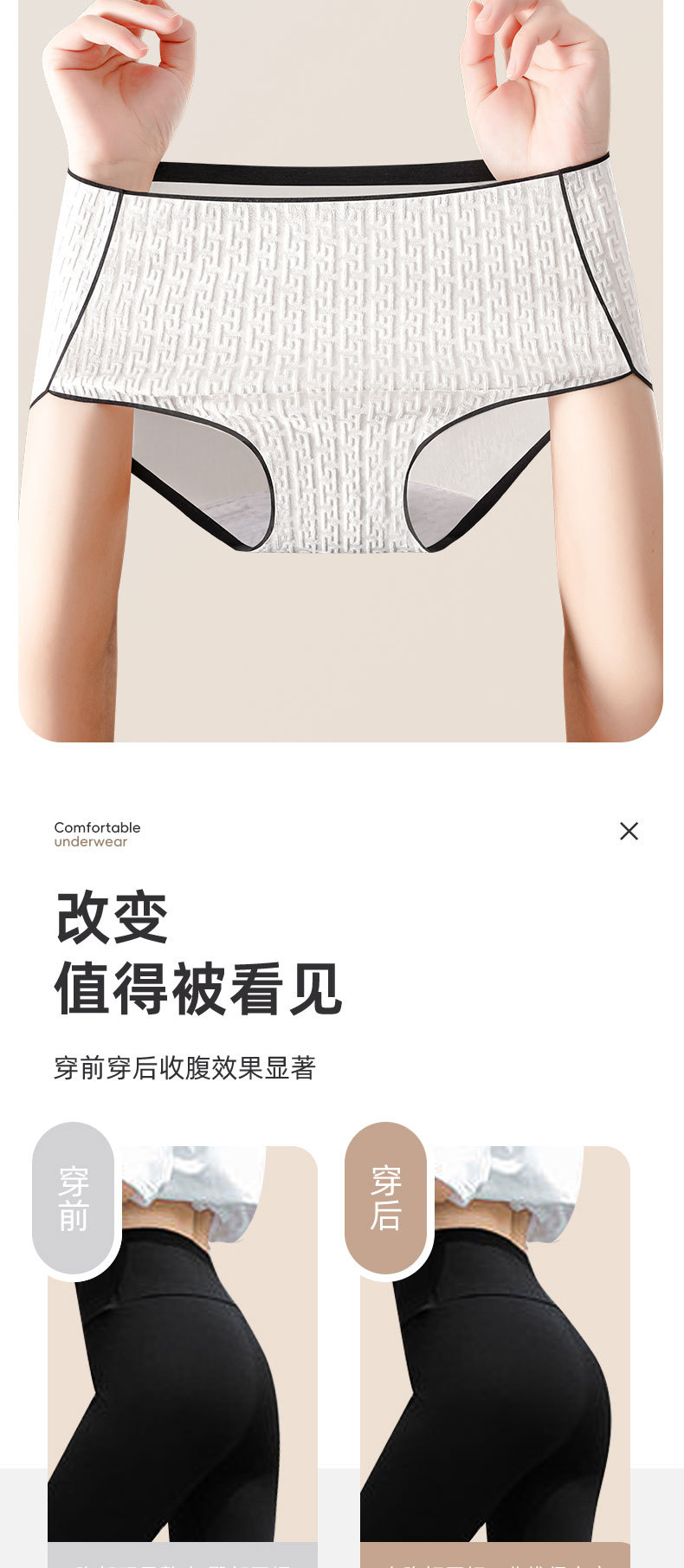 2024 nuevo Jacquard de algodón puro sin costuras cómodo para la piel entrepierna antibacteriana de algodón puro sin costuras cintura alta anti-pinch cadera ropa interior de mujer