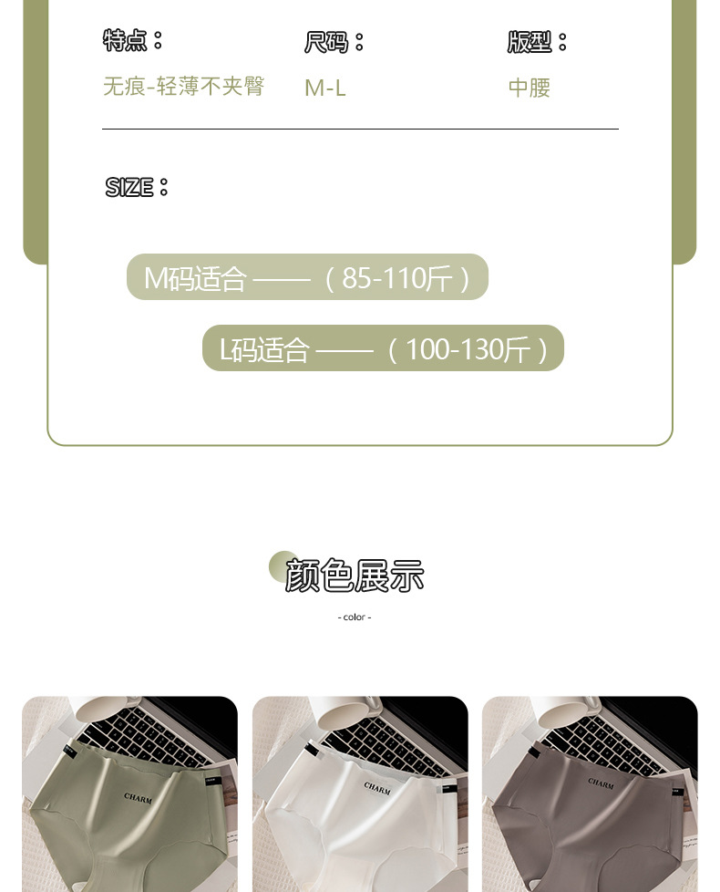 Seamless Ice Silk deportes chica japonesa desnuda melocotón cadera cómoda seda de mora entrepierna antibacteriana verano ropa interior transpirable