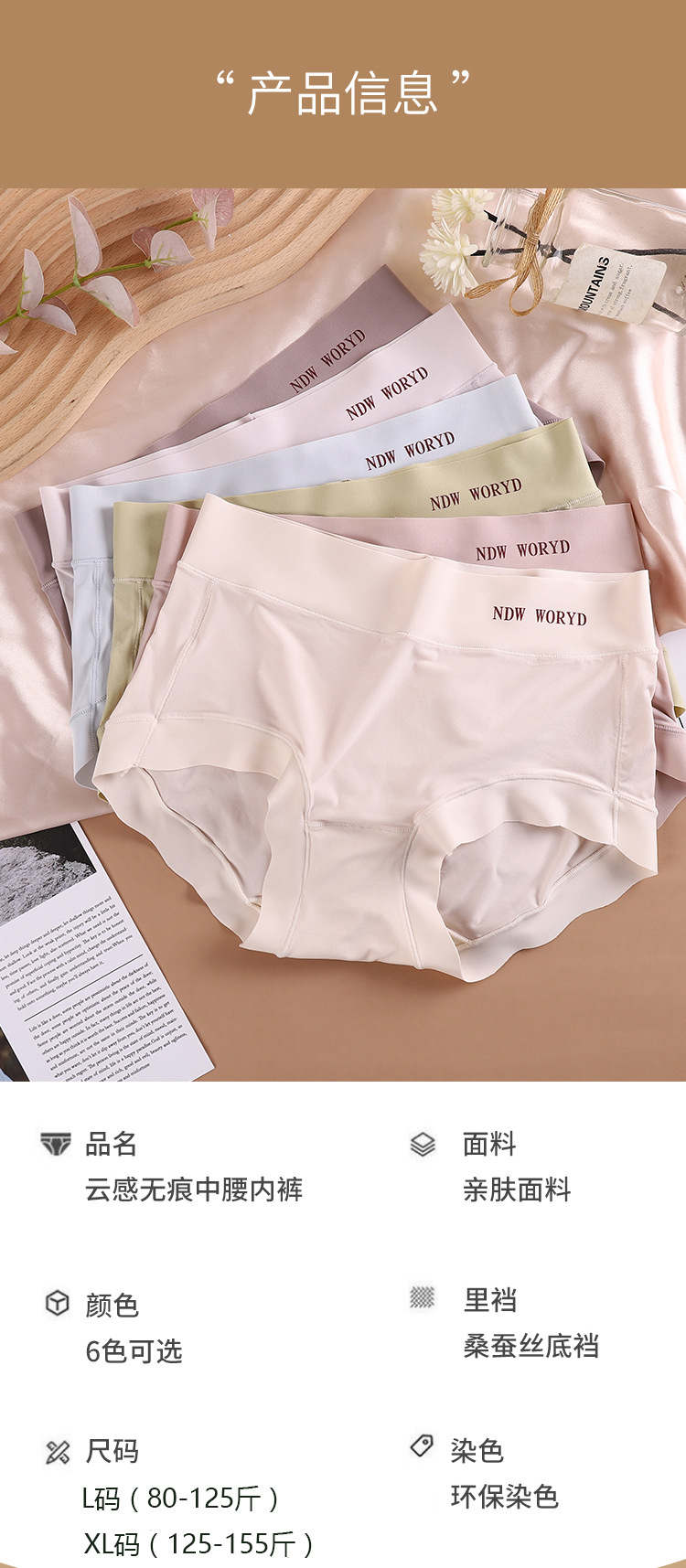 Verano nueva nube de piel desnuda sensación ligeramente cepillado sin costuras cintura media de las mujeres entrepierna agradable a la piel cómoda ropa interior de vaina transpirable