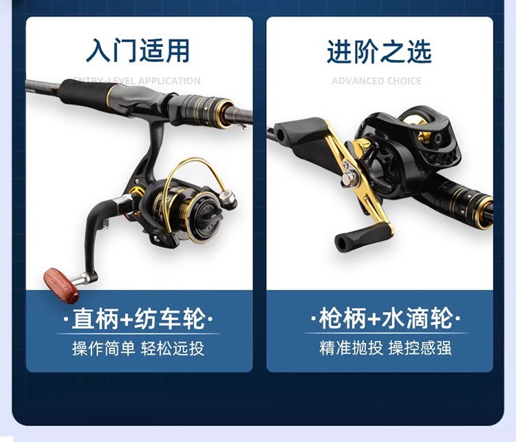 Juego de caña de Luya juego completo de caña de uso general, mango de pistola de largo alcance de lanzamiento de mar, caña de mango recto, rueda giratoria, rueda de goteo, caña de pescar al por mayor