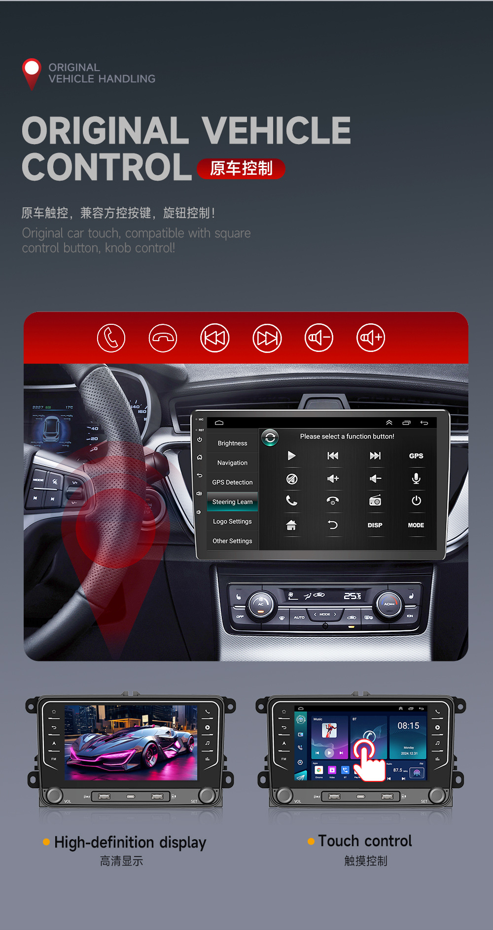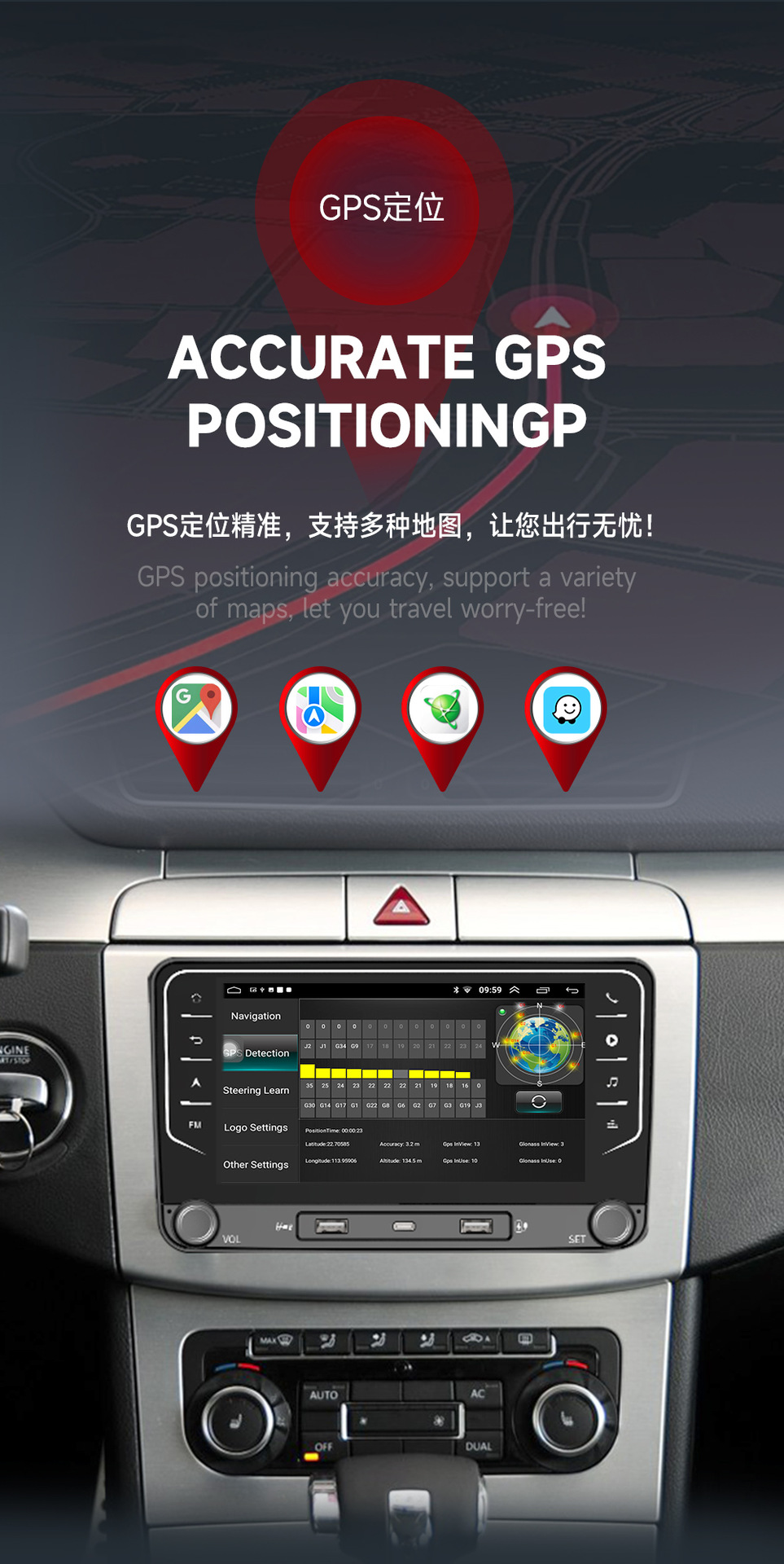 Transfronterizo para la navegación del automóvil de pantalla grande de Volkswagen Android de 7 pulgadas, reproductor de GPS Bluetooth, máquina integrada de control central de navegación