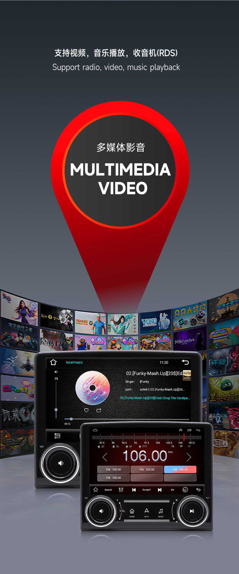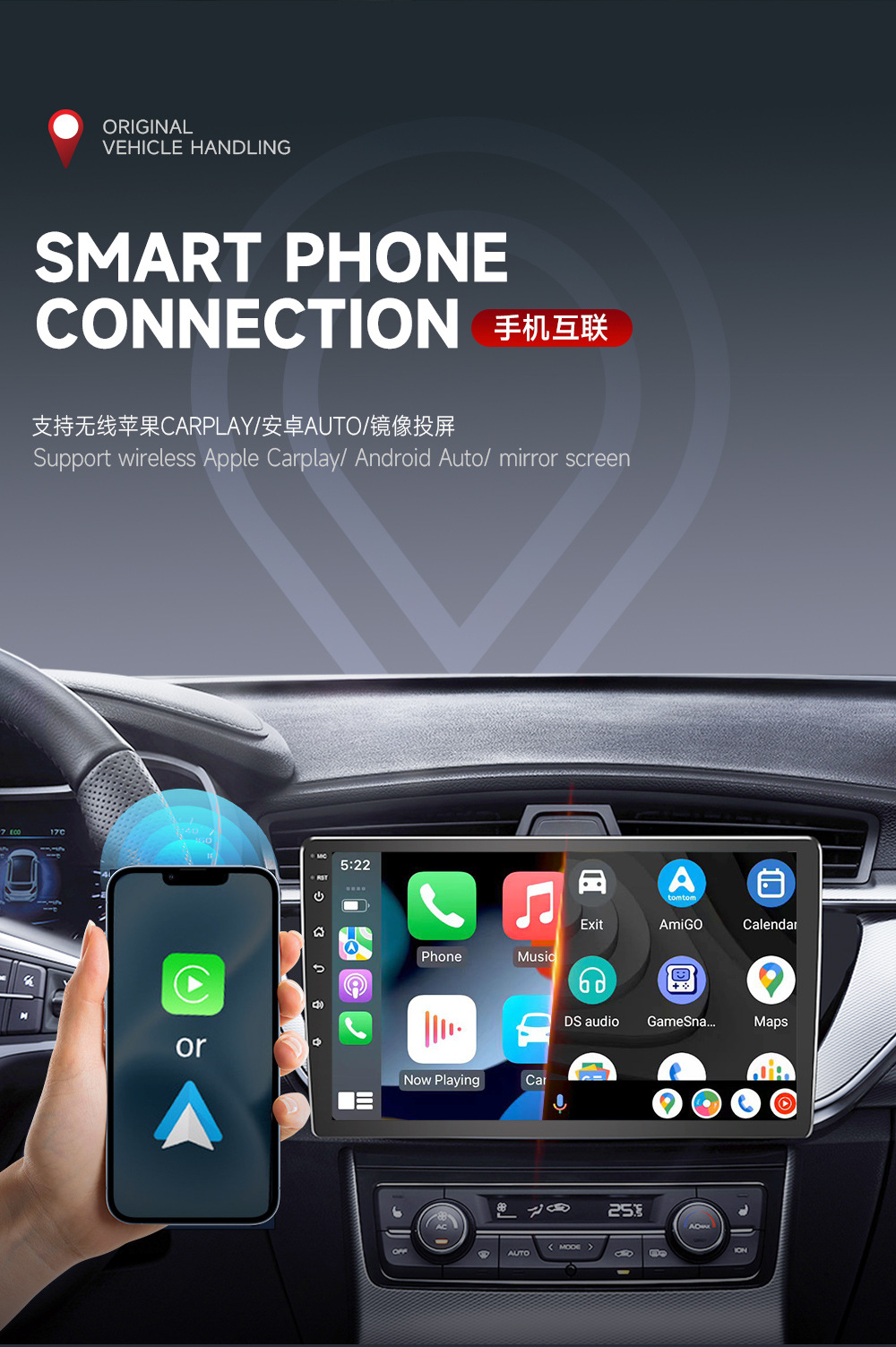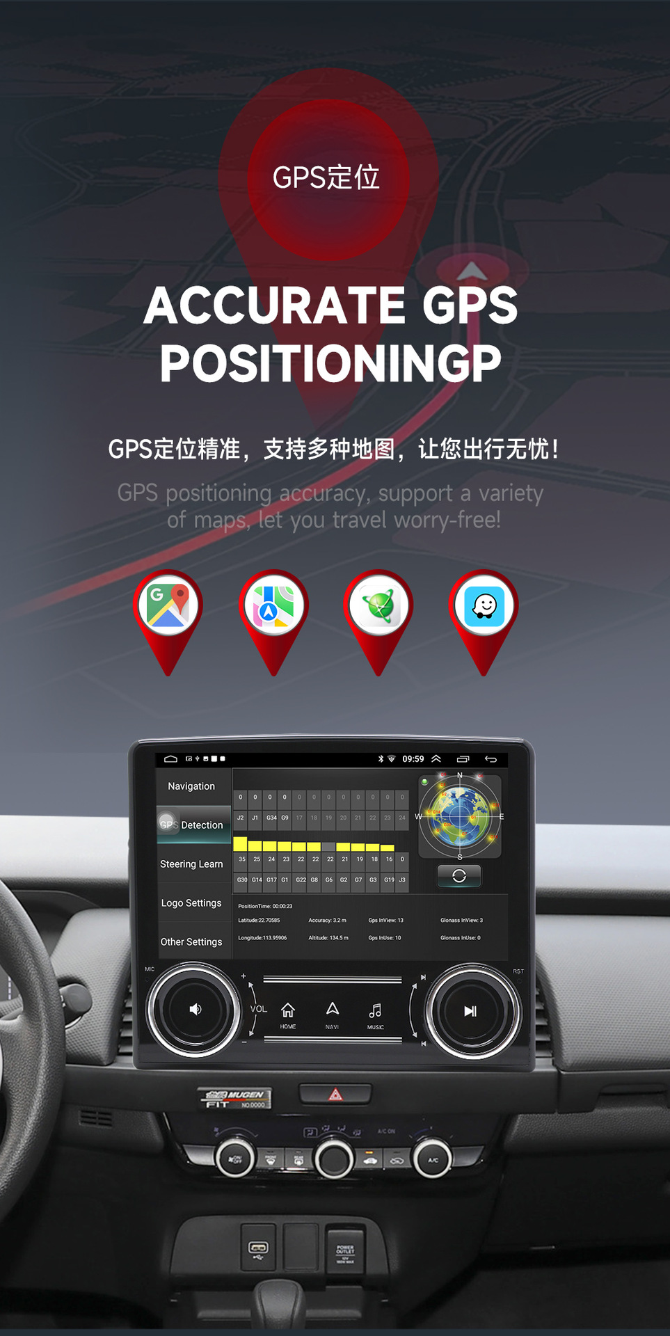 Transfronterizo Universal de 9 pulgadas para automóvil Android Navegación de pantalla grande Reproductor de GPS Bluetooth Carplay todo en uno