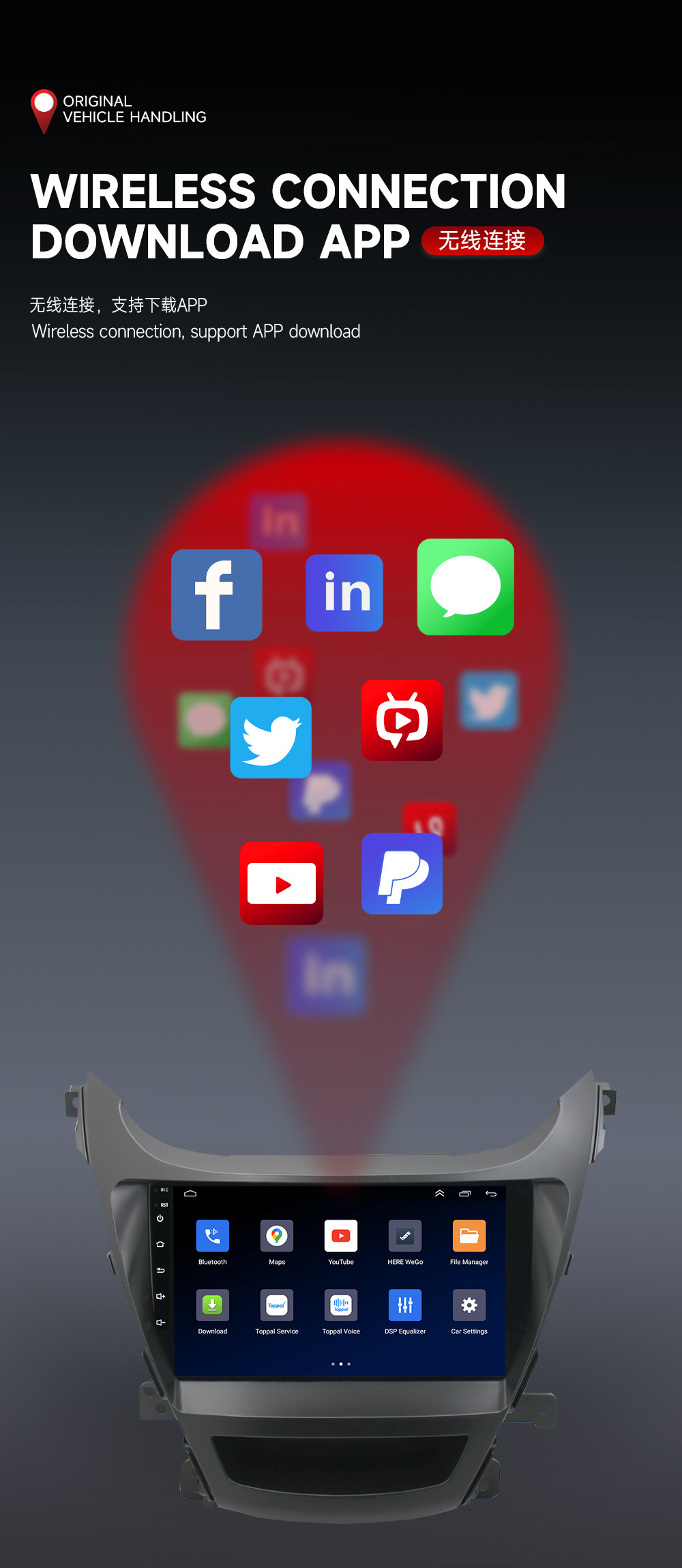Aplicable a 14 ~ 15 Hyundai ELANTRA reproductor de navegación Android de 9 pulgadas que invierte la imagen