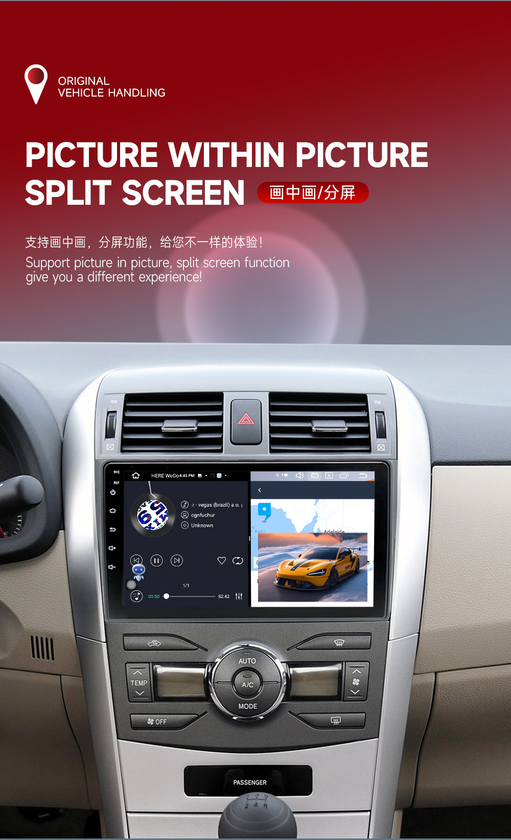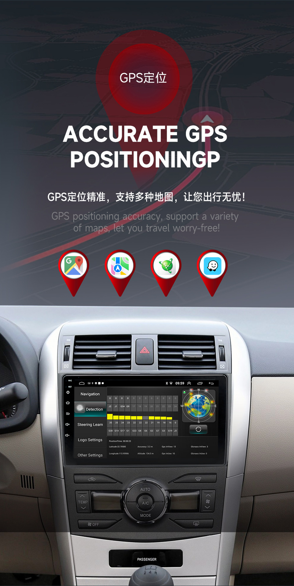 Aplicable para 2009-2013 Corolla Toyota Corolla 9 pulgadas pantalla grande control central todo en uno navegación para automóvil