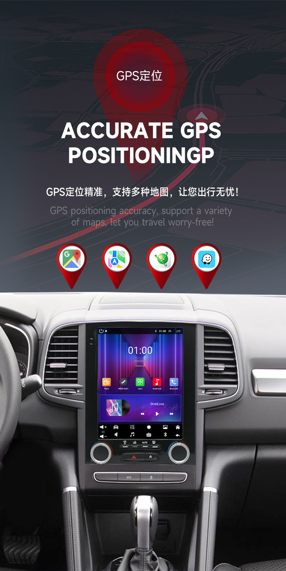 Aplicable a la navegación vertical del coche de la pantalla del megana 4 coreao la máquina todo en uno androide de control central del coche de pantalla grande de 9,7 pulgadas.