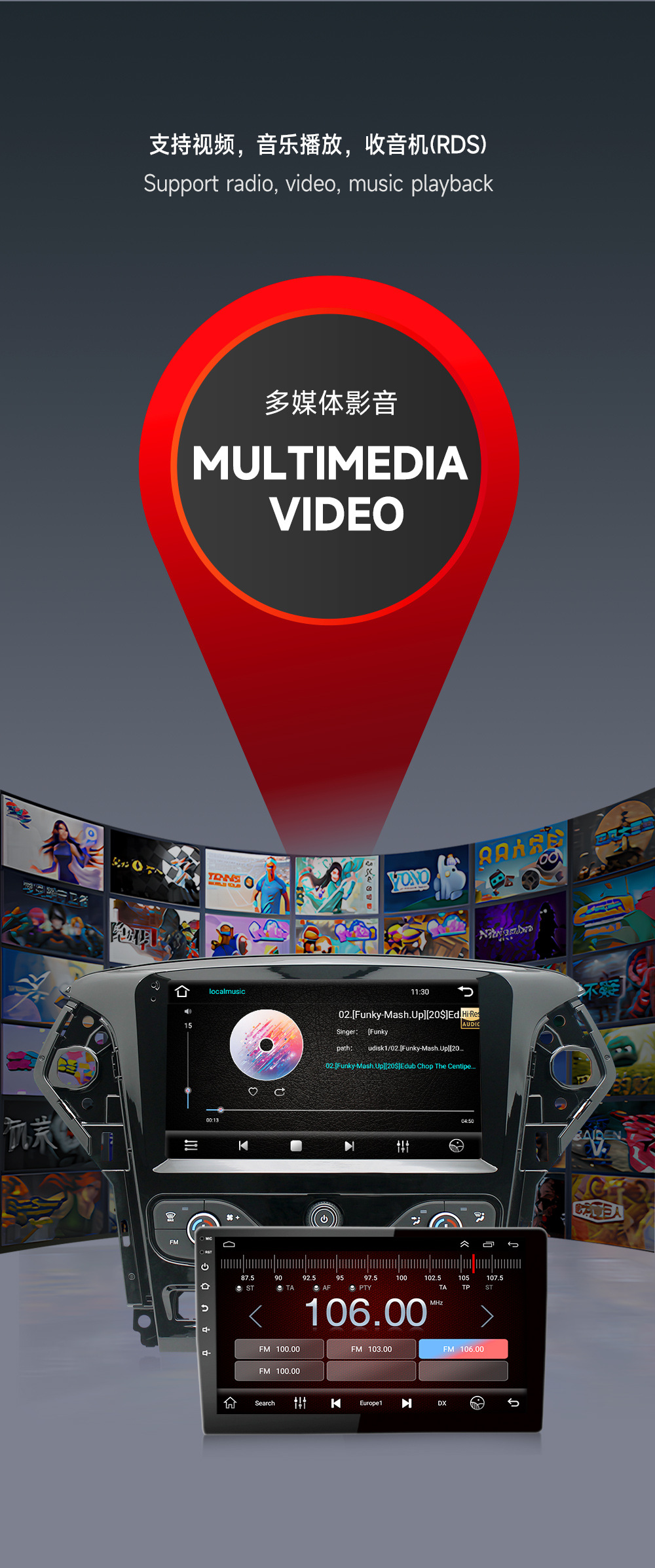Aplicable a la nueva 11-13 Ford Zhisheng coche inteligente Android navegación GPS Bluetooth revertir la imagen de la máquina todo en uno