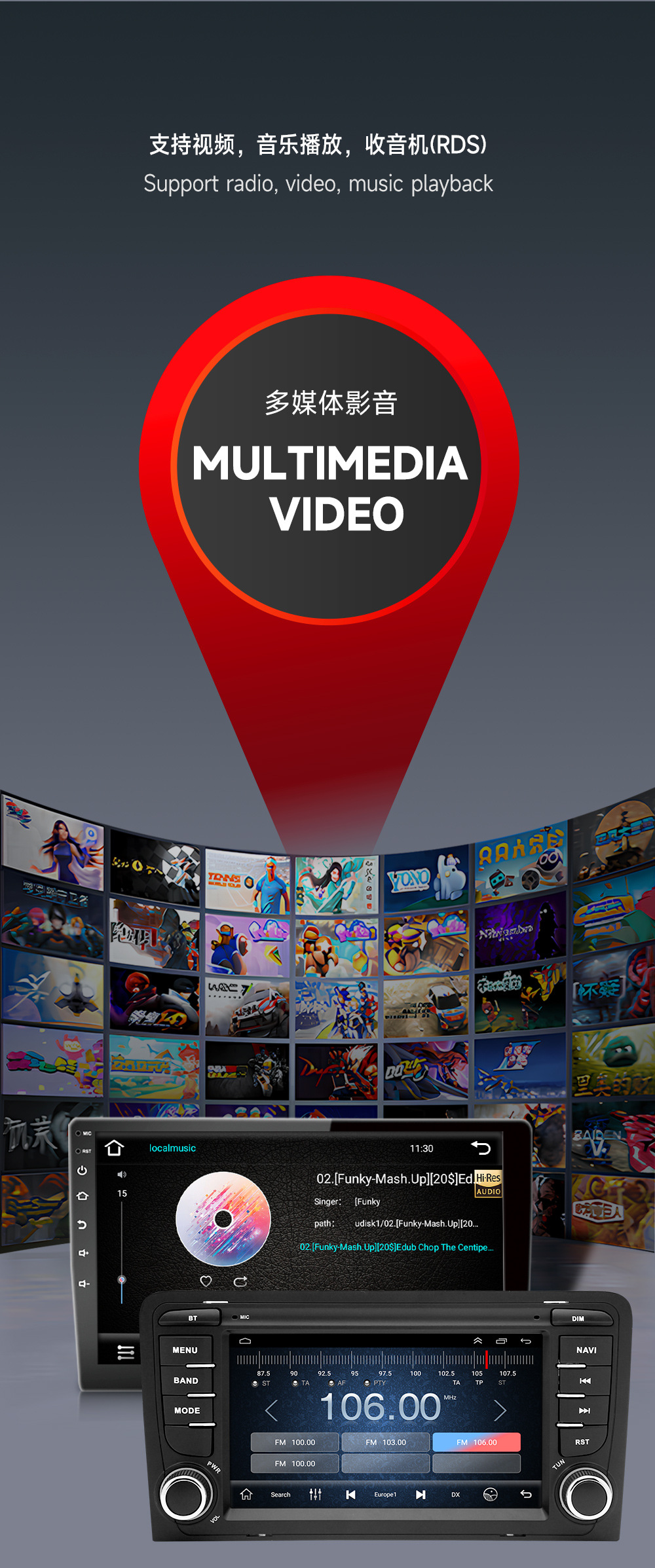 Transfronterizo para 02-08 Audi A4 Car Navigation Reproductor Bluetooth Control central integrado Navegación para automóvil
