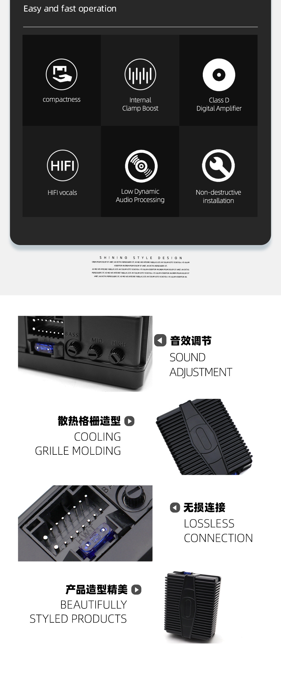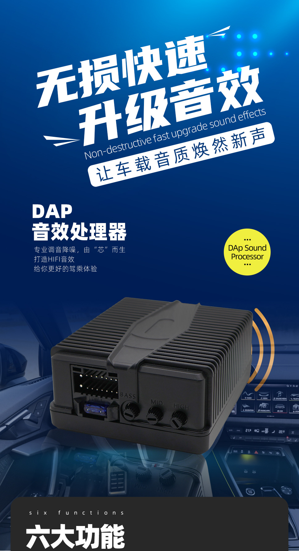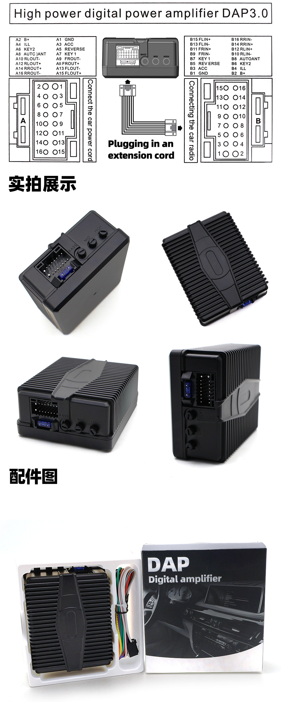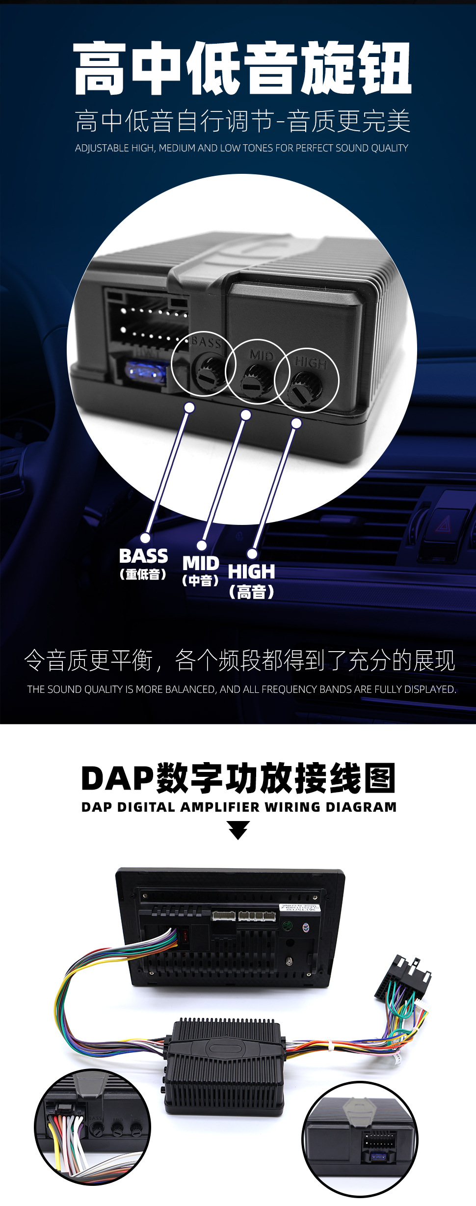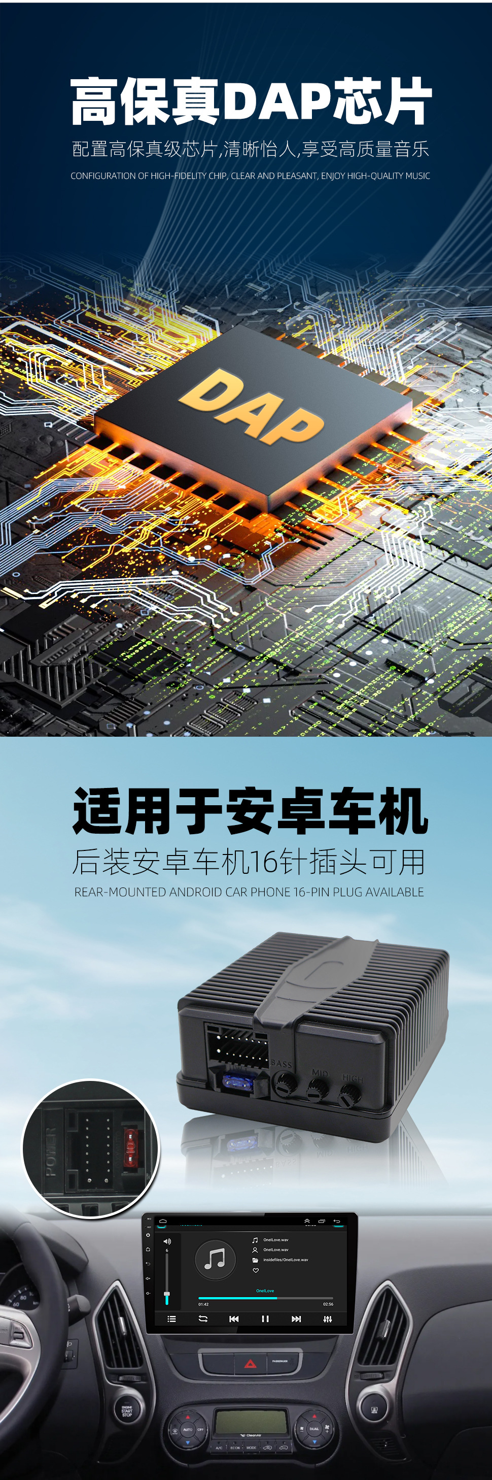Amplificador de potencia DSP de pantalla grande de Android Instalación no destructiva Amplificador de potencia digital modificado en automóvil de alta potencia para mejorar la calidad del sonido HIFI