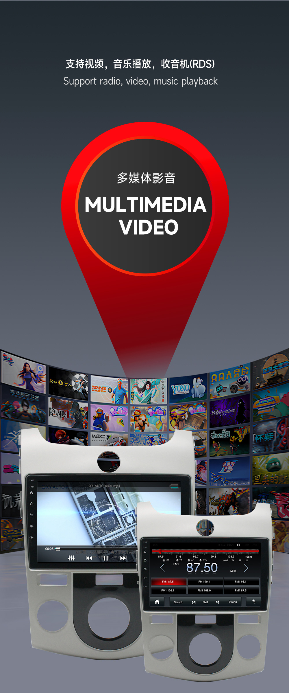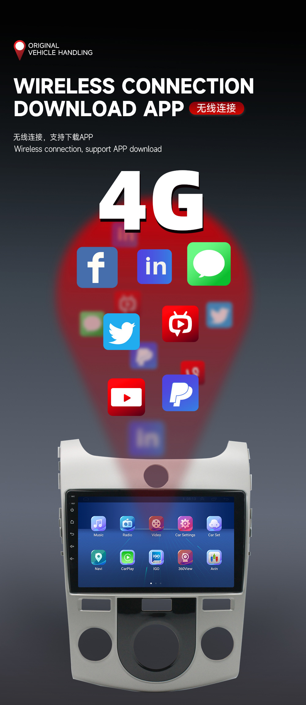 Aplicable a Kia Fredi Android reproductor de navegación del coche MP5 Radio 4 + 64 Carplay incorporado