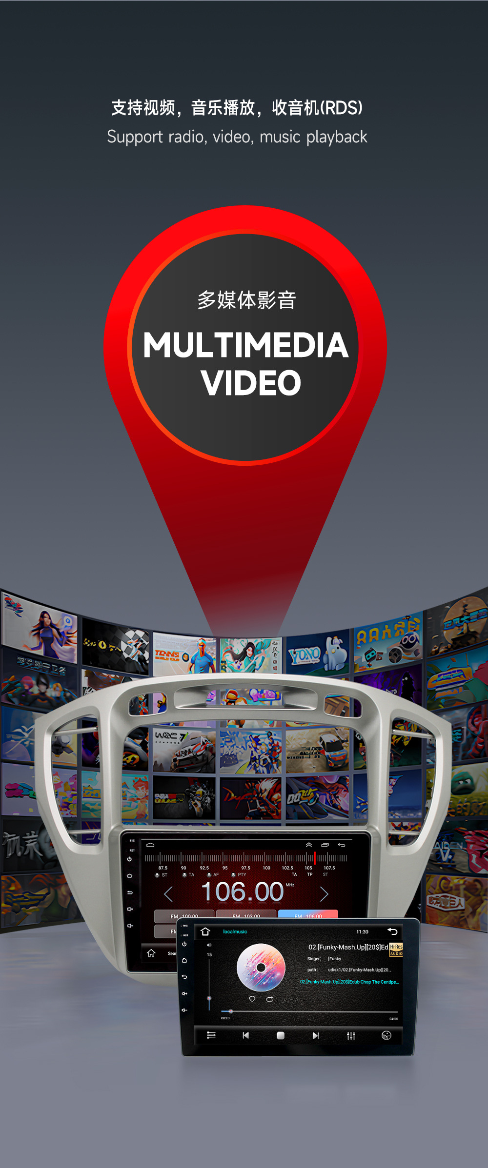 Aplicable a 00-07 Toyota Highlander Android navegación Bluetooth MP5 coche reproductor de coche imagen de marcha atrás