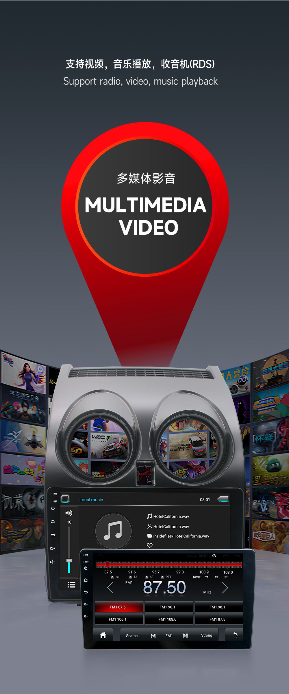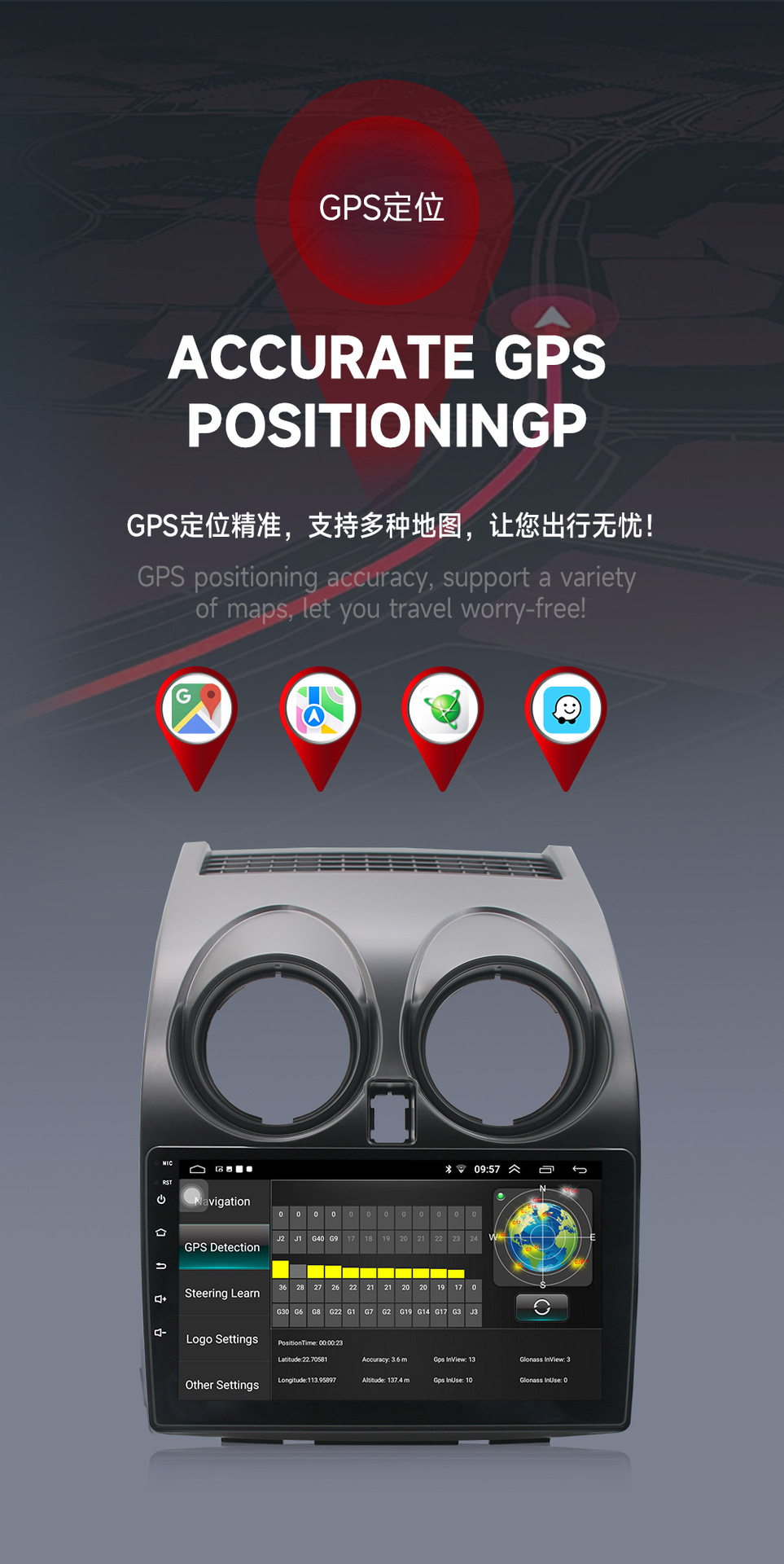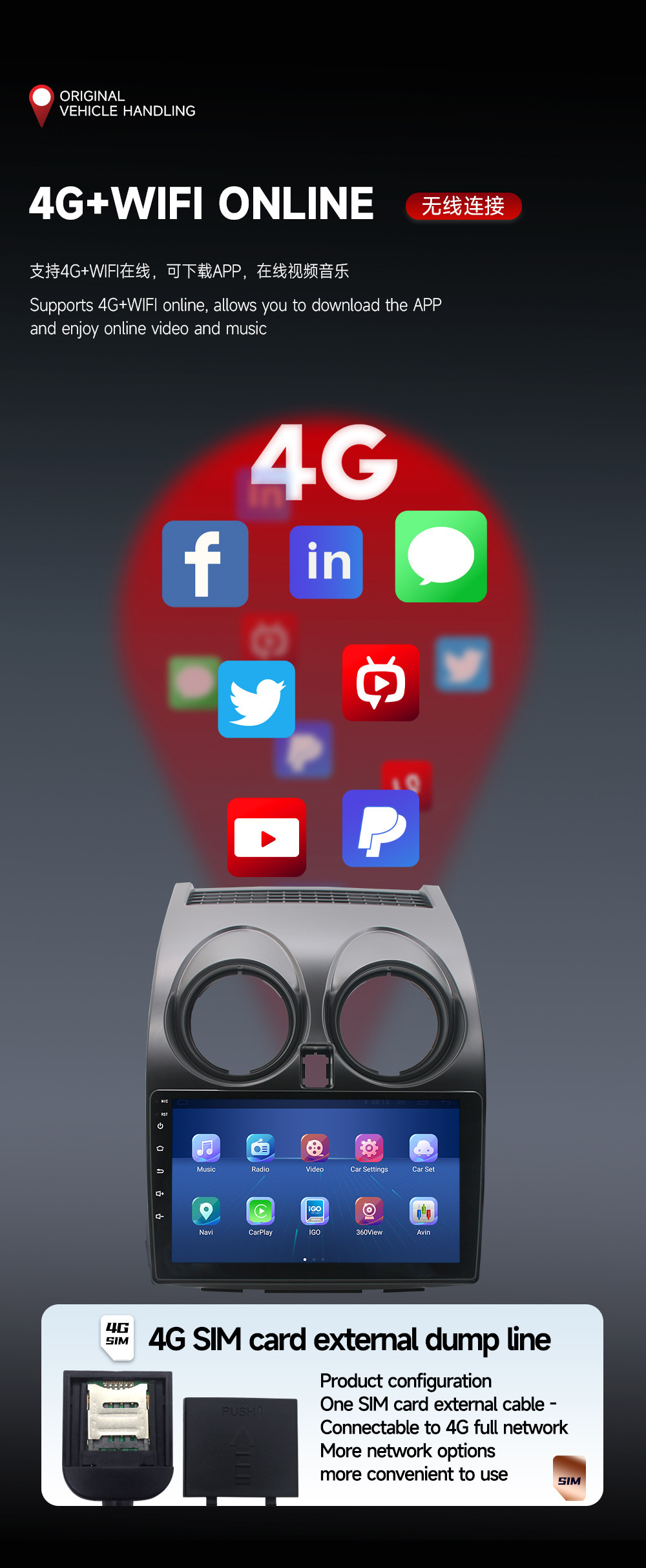 Aplicable a 06-13 Nissan Qashqai Android reproductor de navegación MP5 Radio 4 + 64 incorporado Carplay