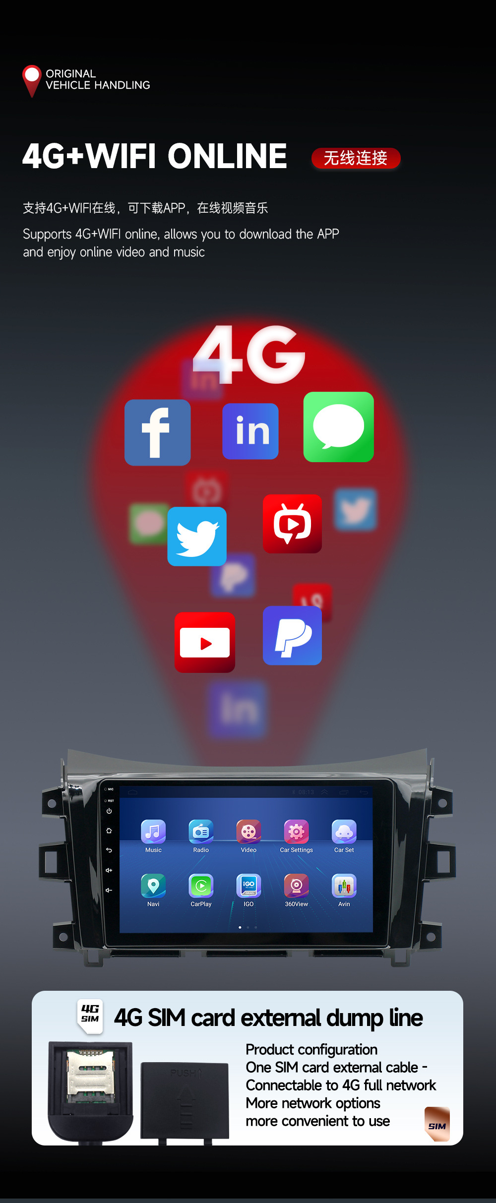 Aplicable a 17 Nissan Navara Tida Android reproductor de navegación MP5 Radio 4 + 64 incorporado Carplay