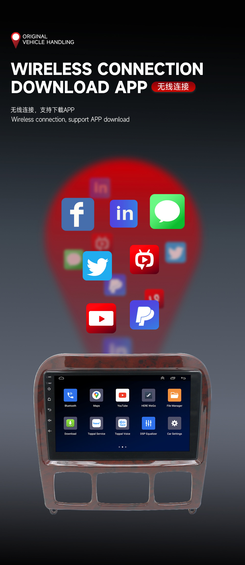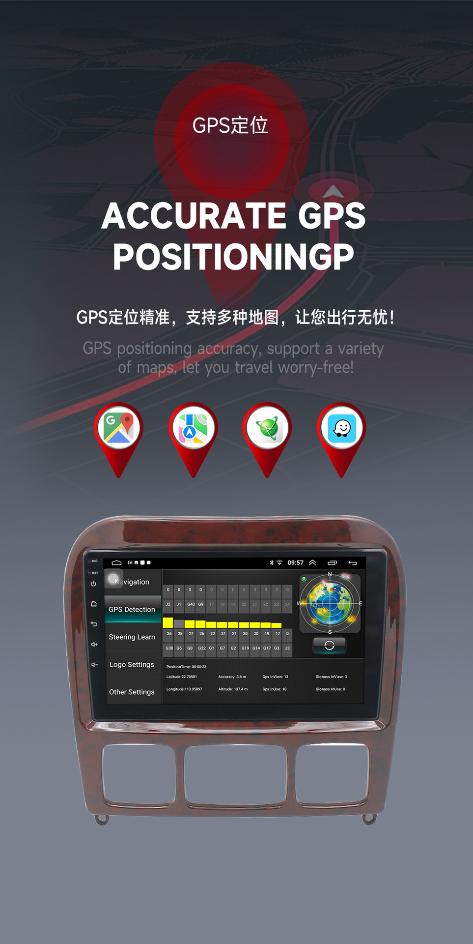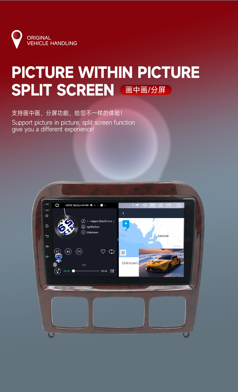 Aplicable a 09 mercedes-benz clase S rojo melocotón madera android navegación mp5 reproductor GPS revertir imagen coche todo en una máquina