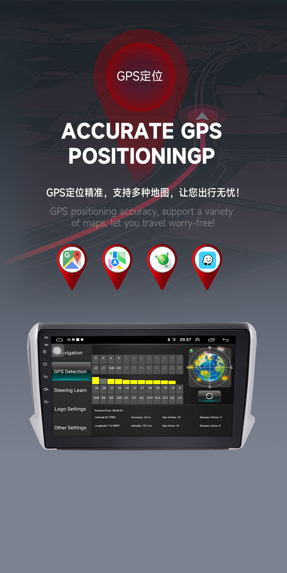 Aplicable a 02-13 Peugeot 307 Android navegación coche Bluetooth MP5 coche GPS revertir reproductor de imagen
