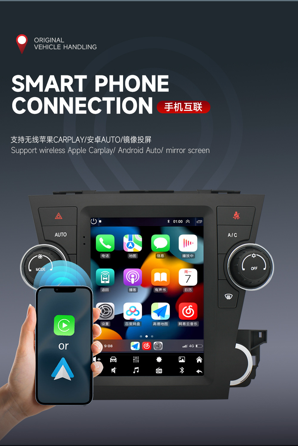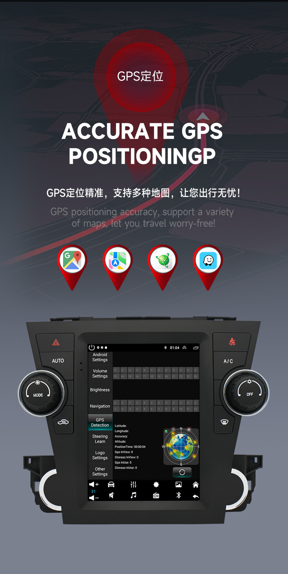 Aplicable a 09-12 Highlander pantalla vertical Android GPS inteligente navegación del coche mp5 reproductor GPS