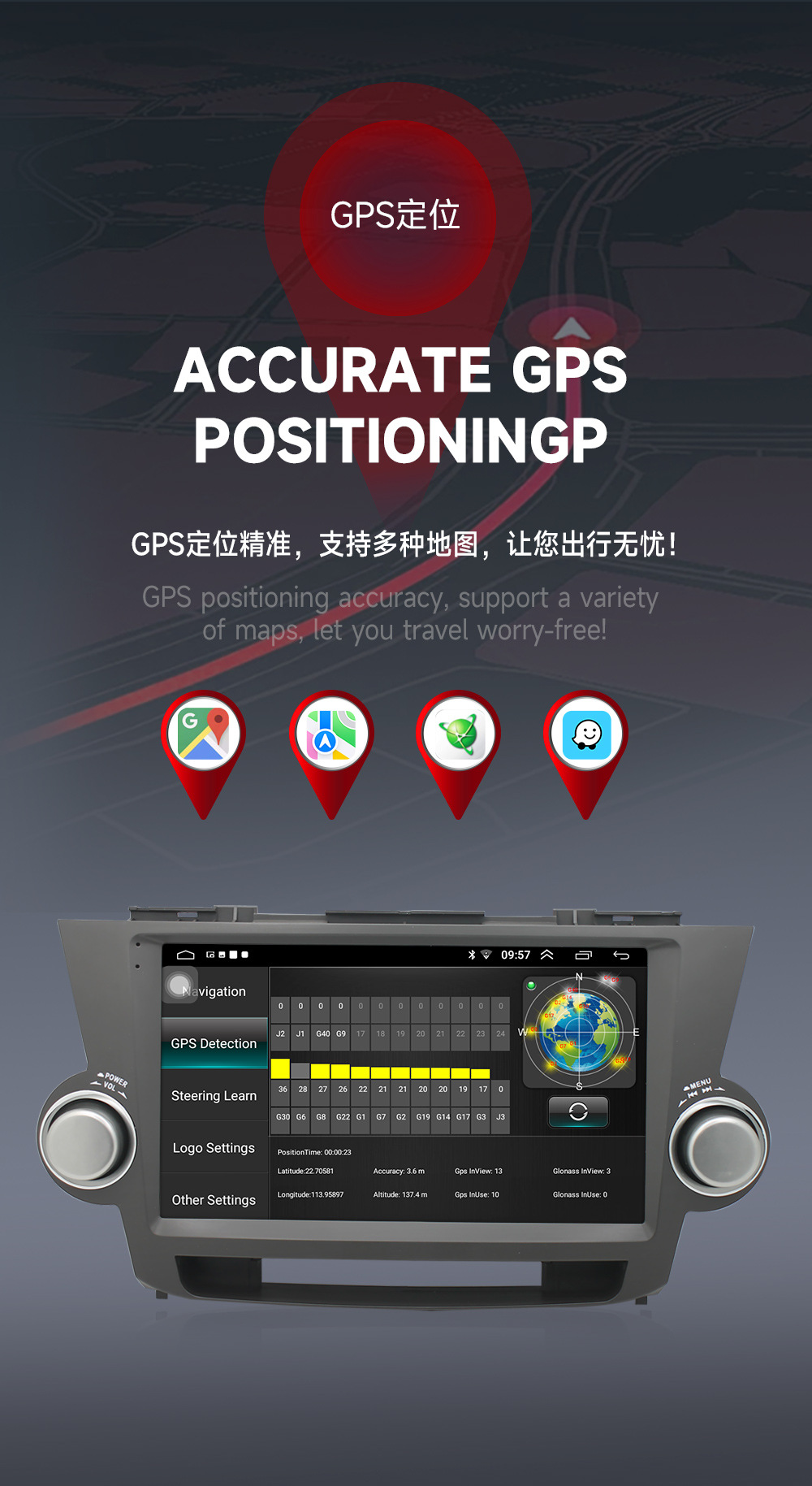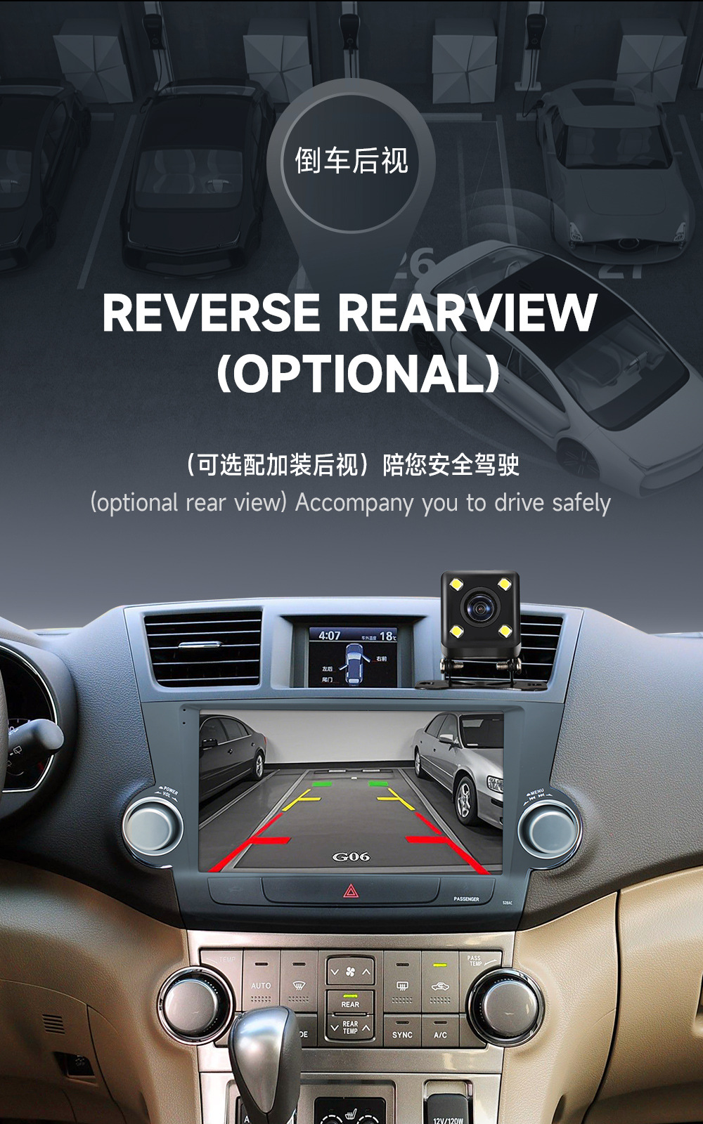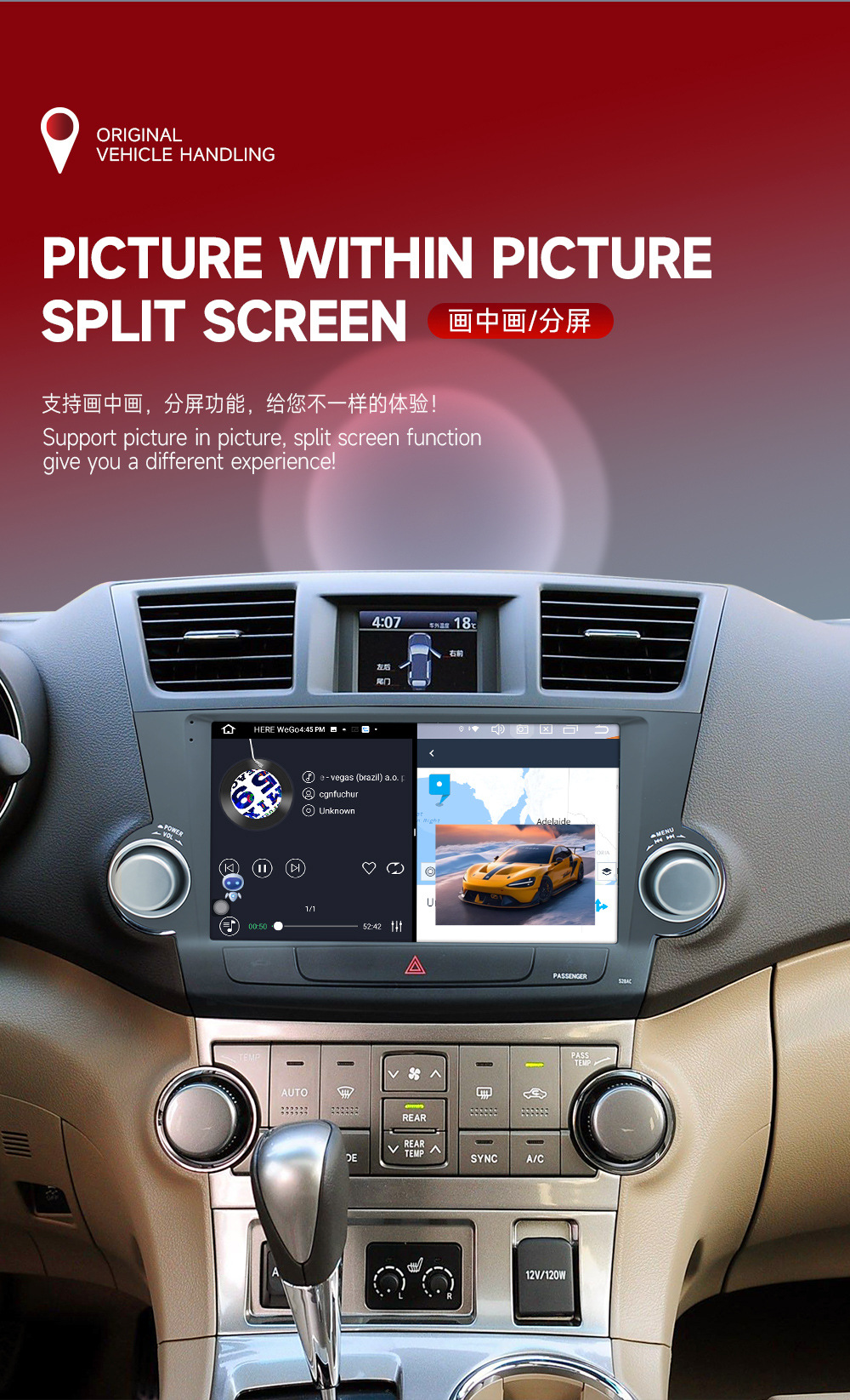 Aplicable a 09-13 Toyota Highlander navegación MP5 navegación del coche todo en una máquina de marcha atrás Imagen Android navegación