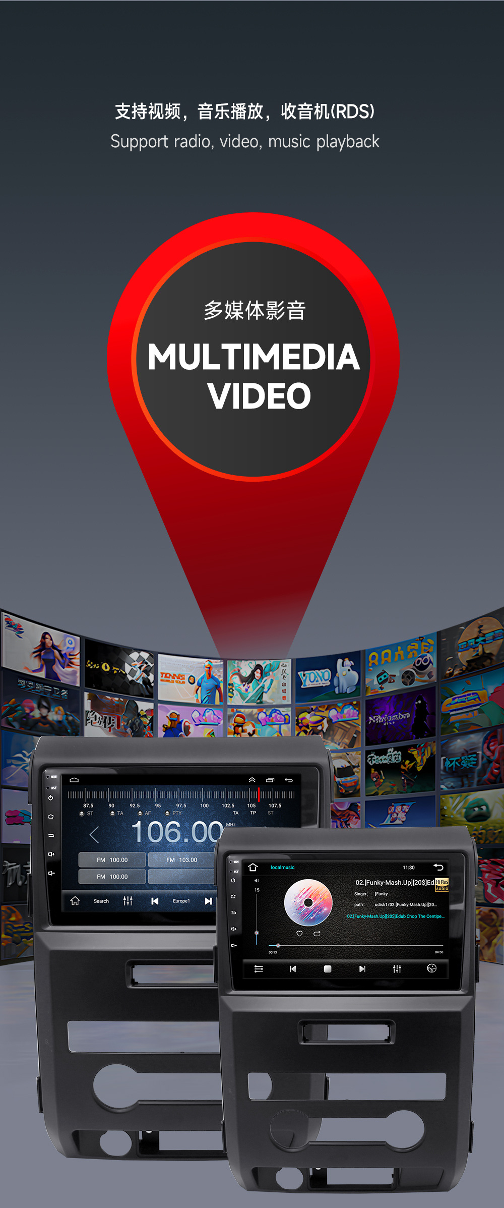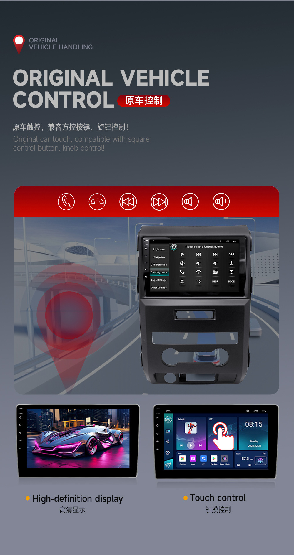 Aplicable a 09-12 Ford Raptor F150 manual Android pantalla grande navegación MP5 reproductor GPS integrado