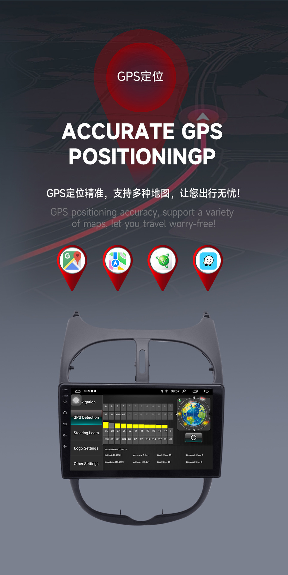 Aplicable a Peugeot 206/Citroen C2 Android navegación GPS del coche todo en uno que invierte la imagen Android