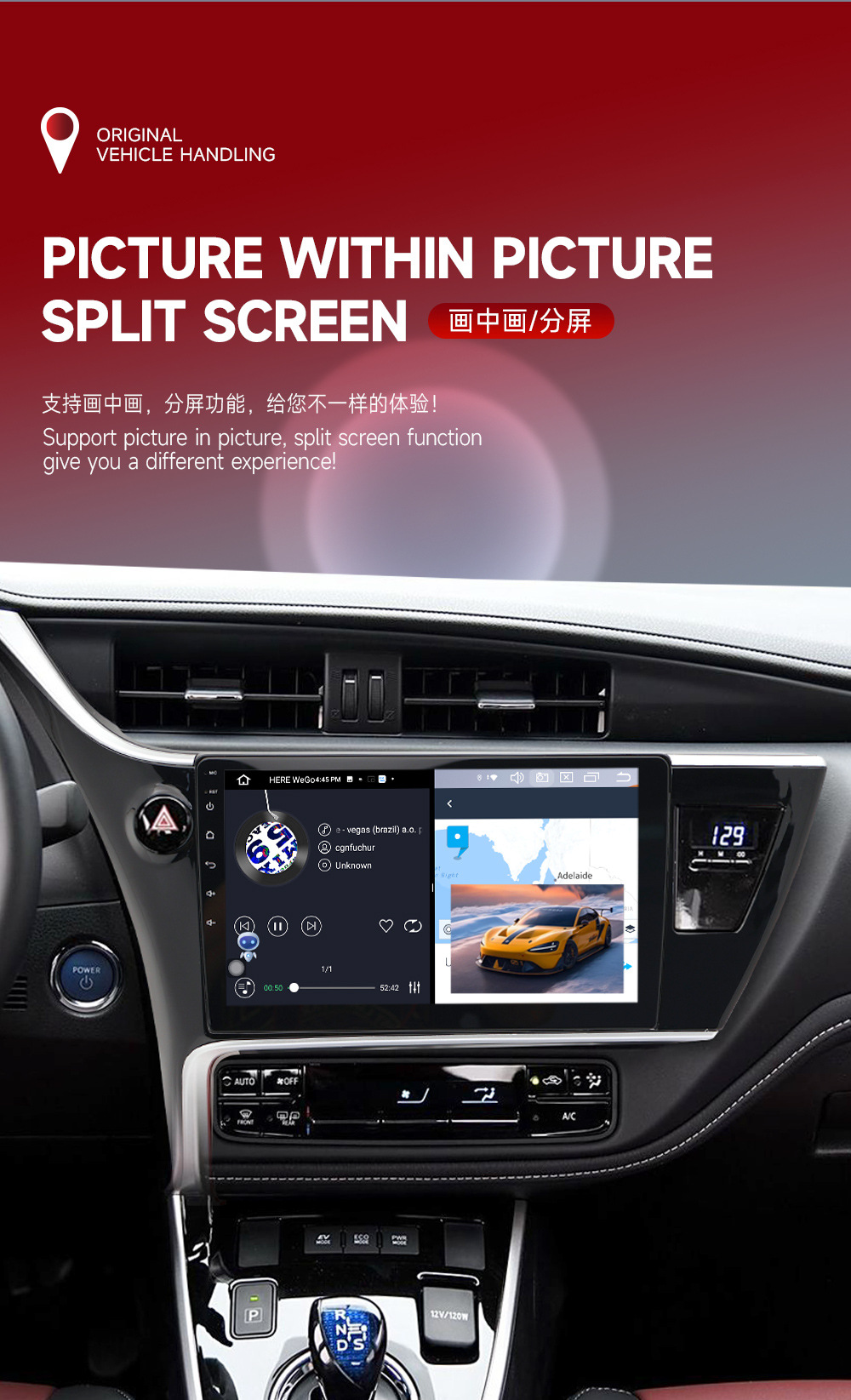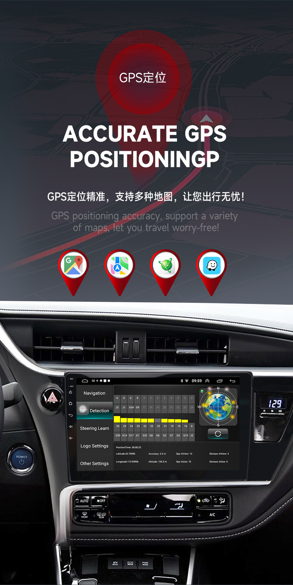 Conveniente para la imagen toda junta de Bluetooth de la navegación GPS de Android del coche de Toyota 17-18 Carola que invierte