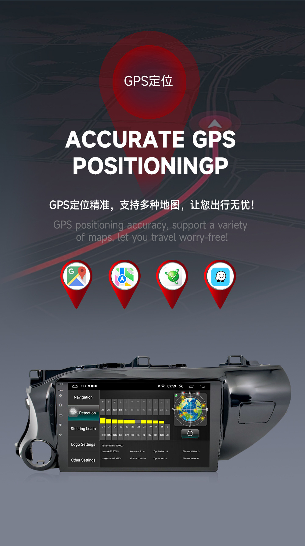 Para Toyota Hailax dejó péptido coche Android GPS navegación todo en un coche Bluetooth revertir imagen