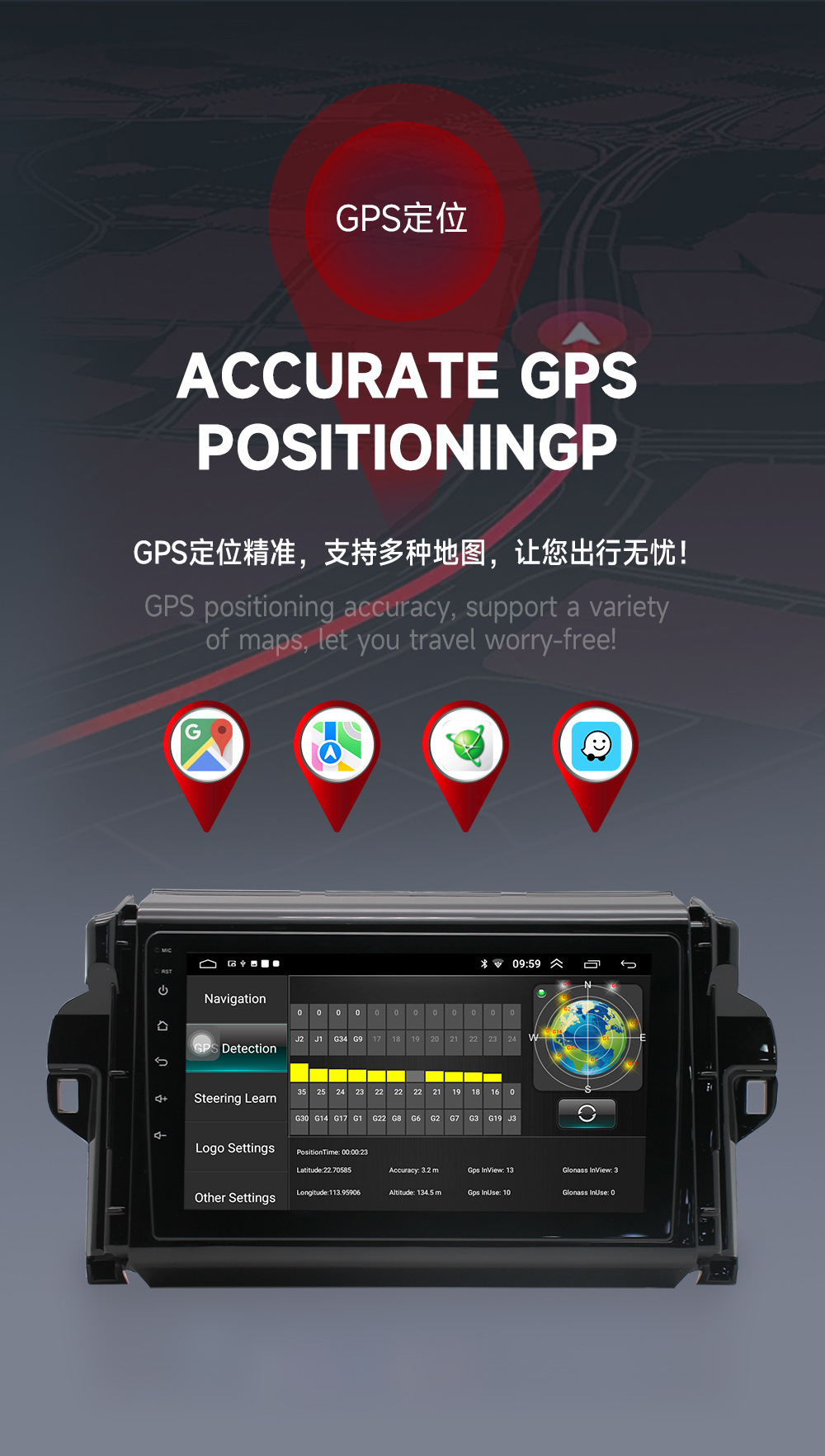 Para Toyota fortuner coche secreto Android navegación GPS todo en un coche que invierte la imagen