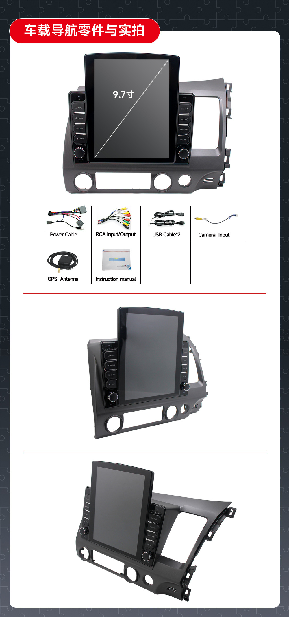Adecuado para Honda 06-11 viejo cívico péptido derecho coche GPS Android navegación todo en un coche imagen de marcha atrás