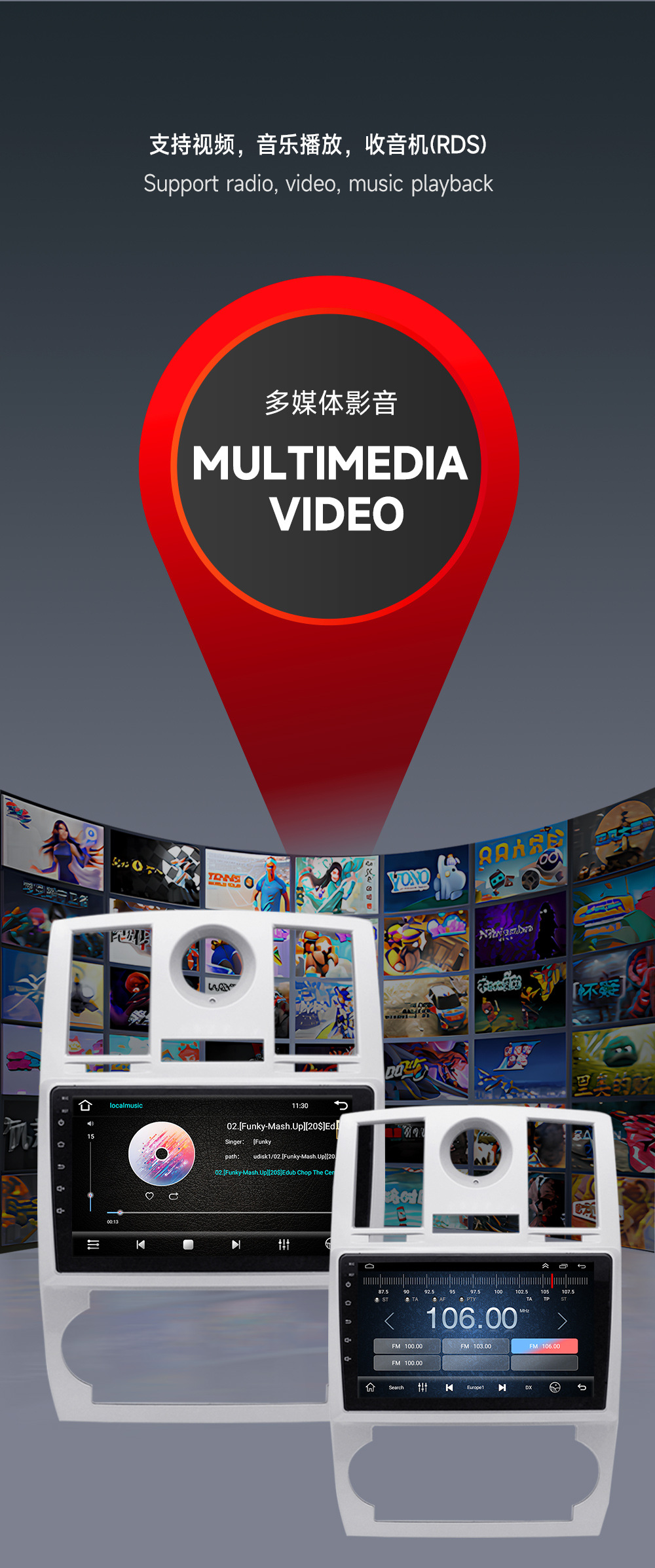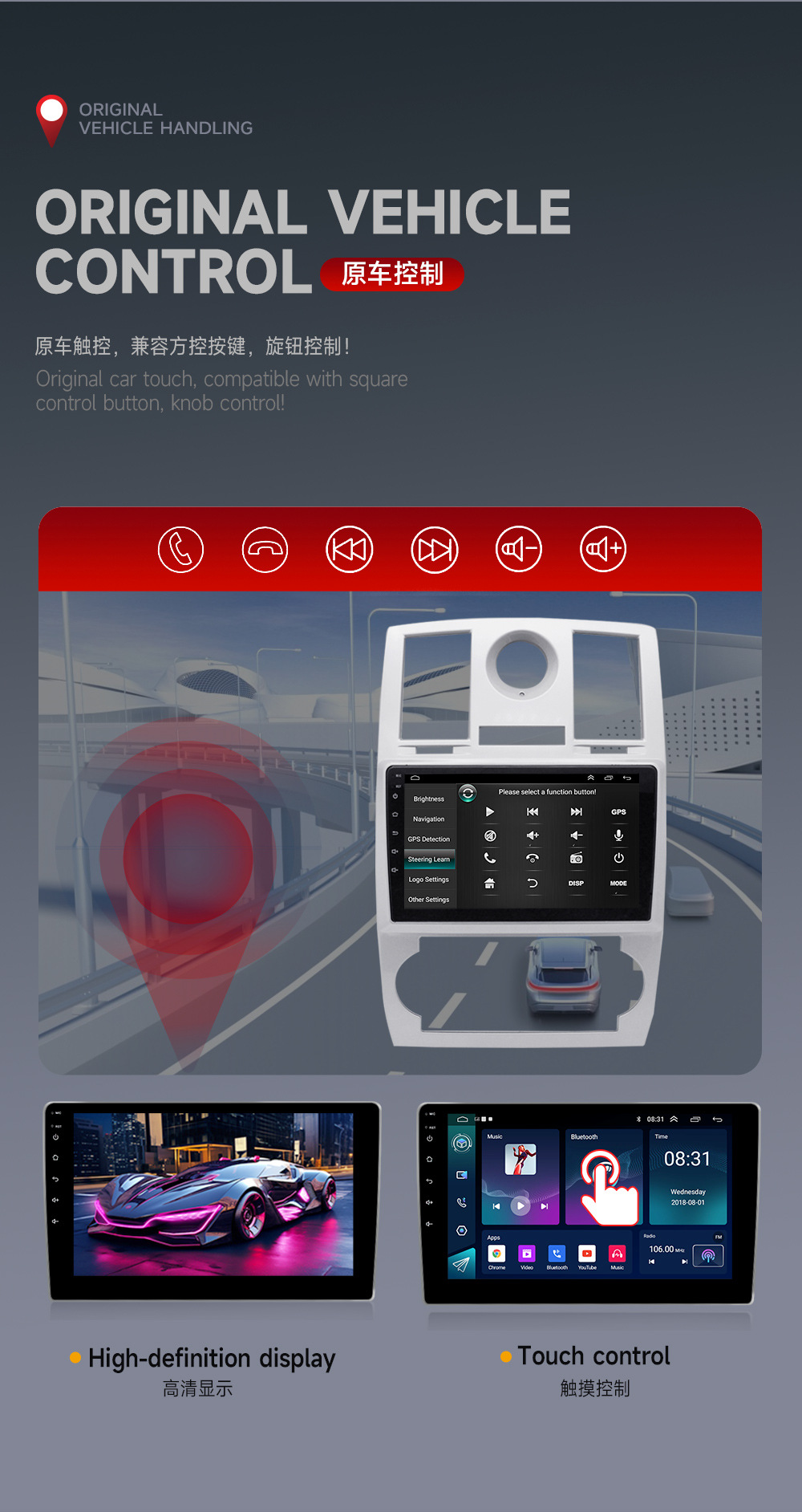 Aplicable a la navegación de pantalla grande de GPS de la navegación 300C 300C modificó al jugador todo junto de GPS del coche del navegador