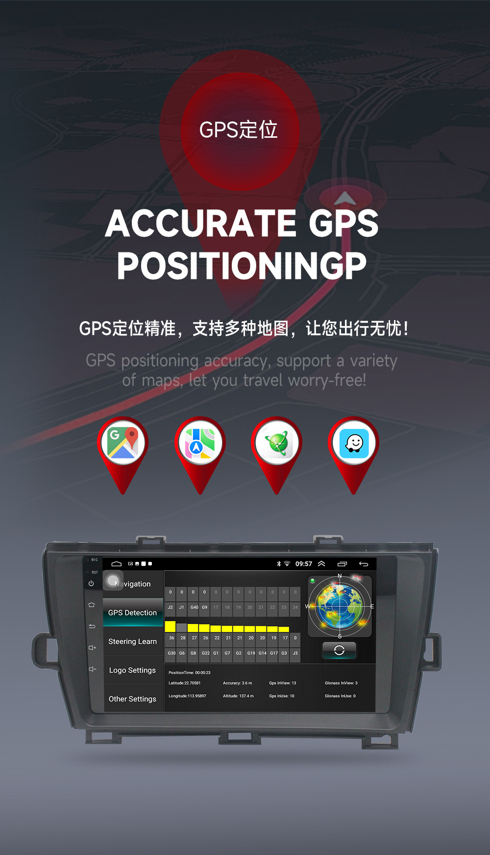 Aplicable a 09-13 Toyota Prius Android navegación coche GPS todo en uno revertir reproductor de imagen