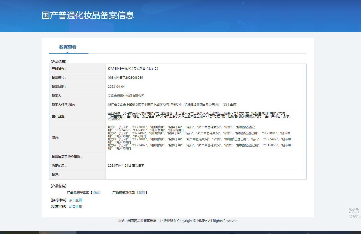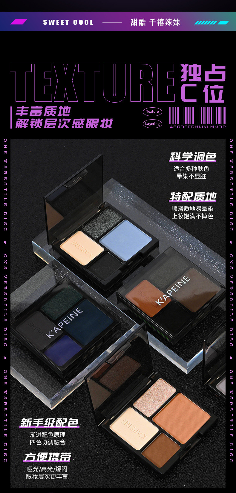 Capel frío de cuatro colores placa de sombra de ojos verano melocotón flor maquillaje de alta apariencia fiesta estudiantil recomendar asequible ahumado