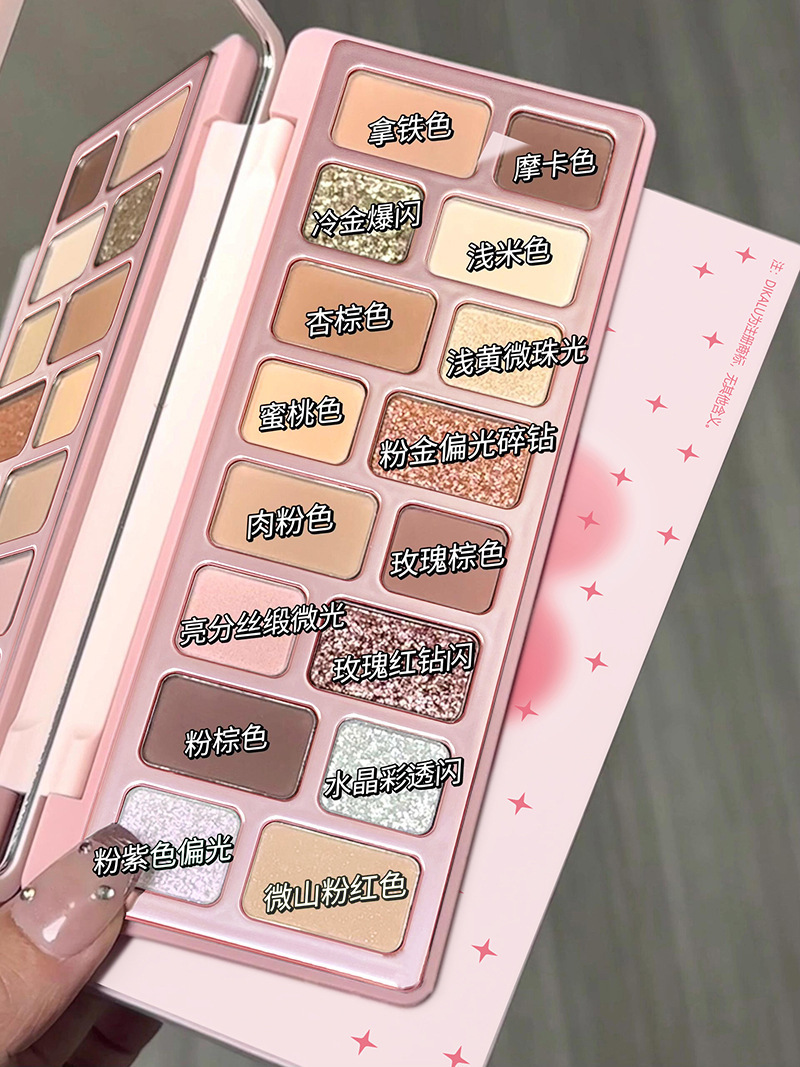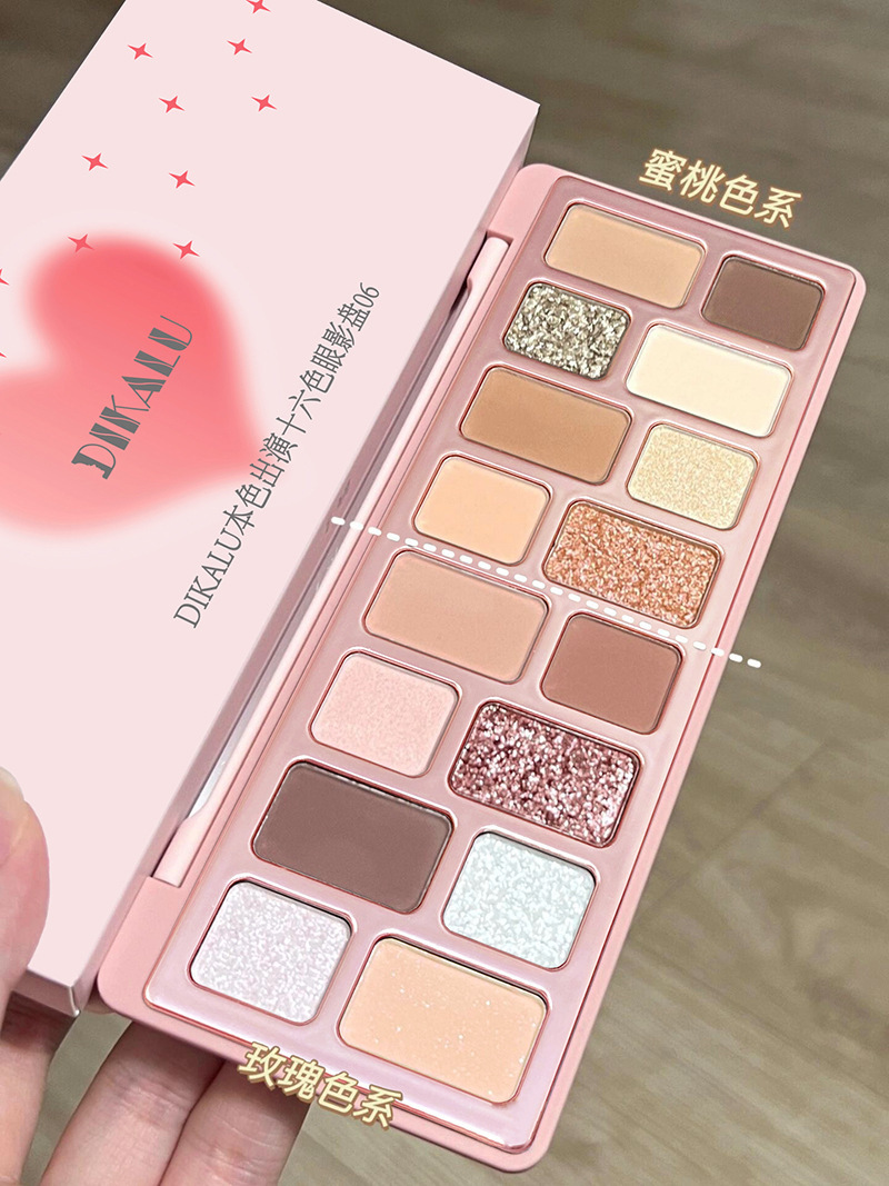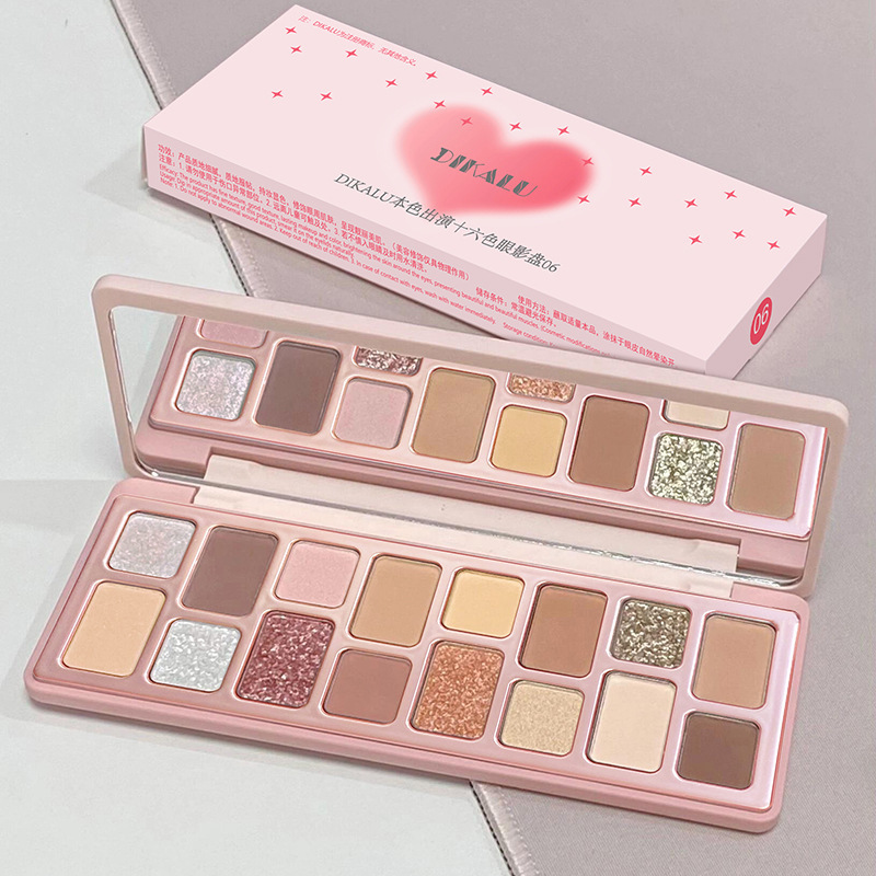 Disco de sombras de ojos de 16 colores DIKALU 2024 nuevo maquillaje ligero diario, maquillaje de juego de color, corazón, polvo gris, azul, humo negro