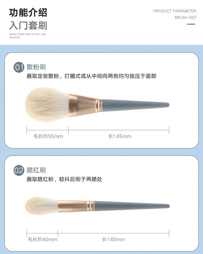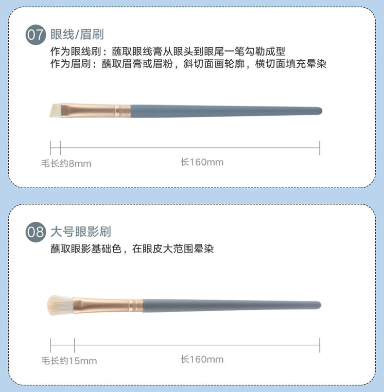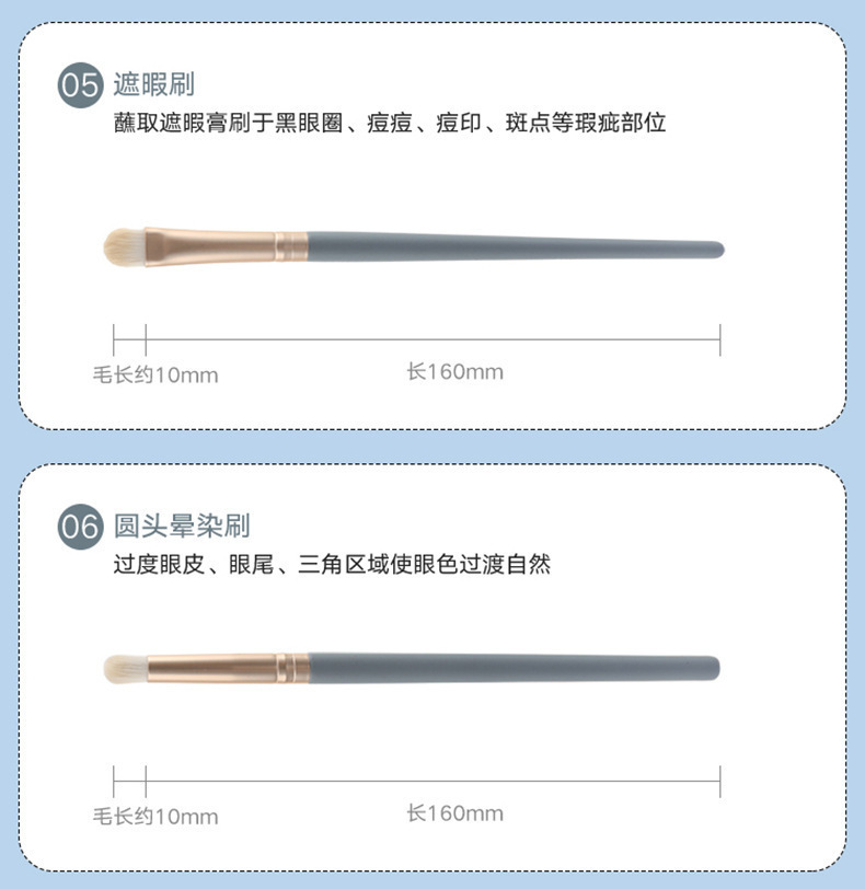 Juego de 10 pinceles de maquillaje Blue Bridge Un juego completo de pinceles profesionales, pinceles suaves para sombras de ojos, pinceles de base, pinceles correctores, herramientas de belleza