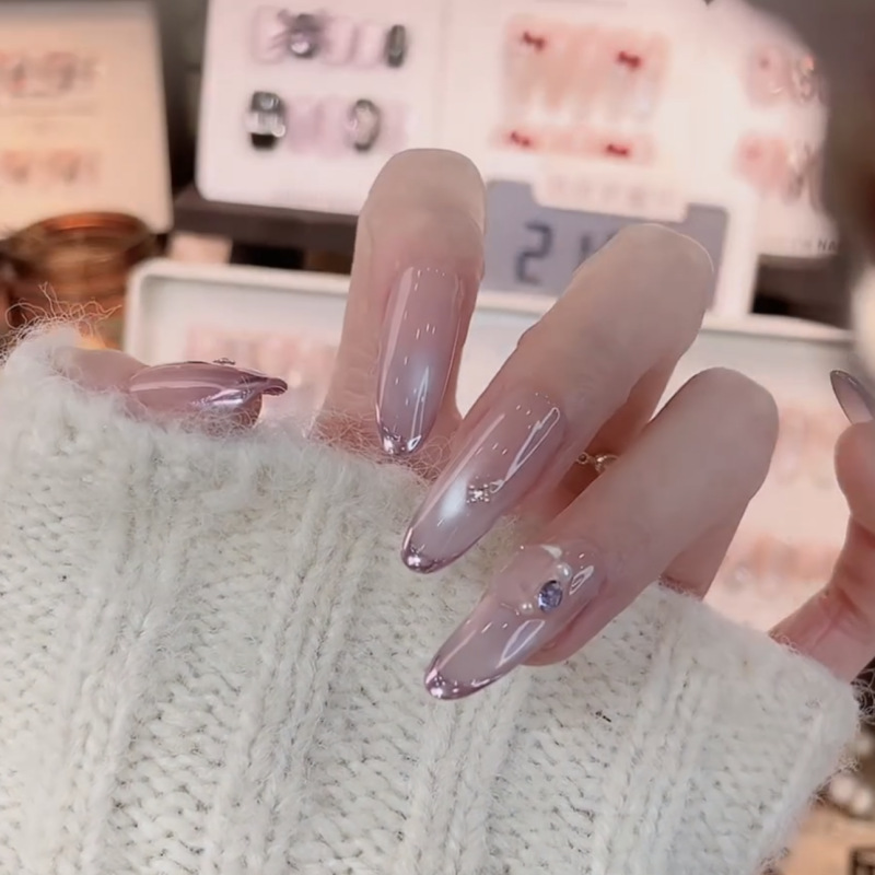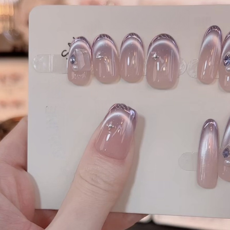 [Encanto púrpura] Armadura de desgaste hecha a mano, temperamento, uñas de fototerapia de todo fósforo, cuentas de vidrio blanco, ojos de gato lavanda