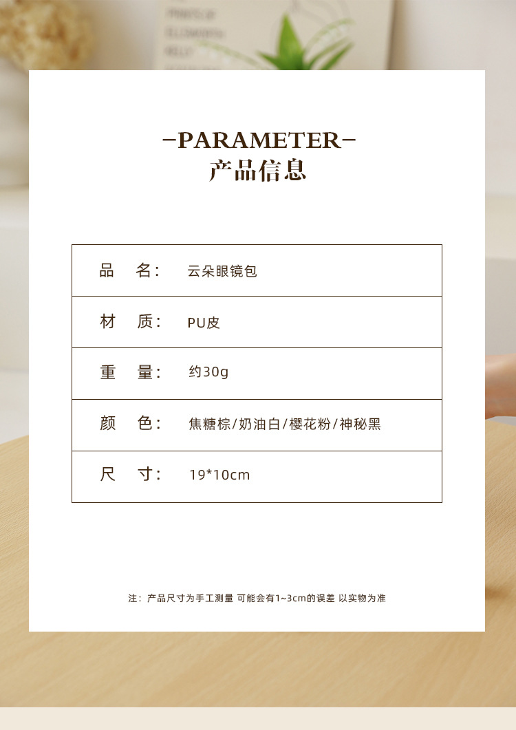 | Colores | Bolsa de tía Yunduo-Blanco,Bolso de tía Yunduo-Negro,Bolsa de tía Yunduo-rosa,Bolsa de tía Yunduo-caramelo,Bolsa de almacenamiento de nubes-blanco,Bolsa de almacenamiento de nubes-negro,Bolsa de almacenamiento de nubes-rosa,Bolsa de almacenamiento de nube-color caramelo,Bolsa de gafas de nube-rosa,Bolsa de gafas Yunduo-caramelo,Sobre rojo de boca de nube-blanco,Sobre rojo de boca de nube-negro,Sobre rojo de boca de nube-rosa,Sobre rojo de boca de nube-color caramelo |